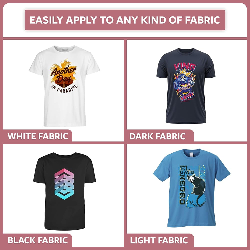 VERSATILE – These sheets can be used on both dark and light fabric are suitable to use on all DTF printers and modified ones. They are best used together with our Extra Fine DTF Hot Melt Powder and DTF Ink