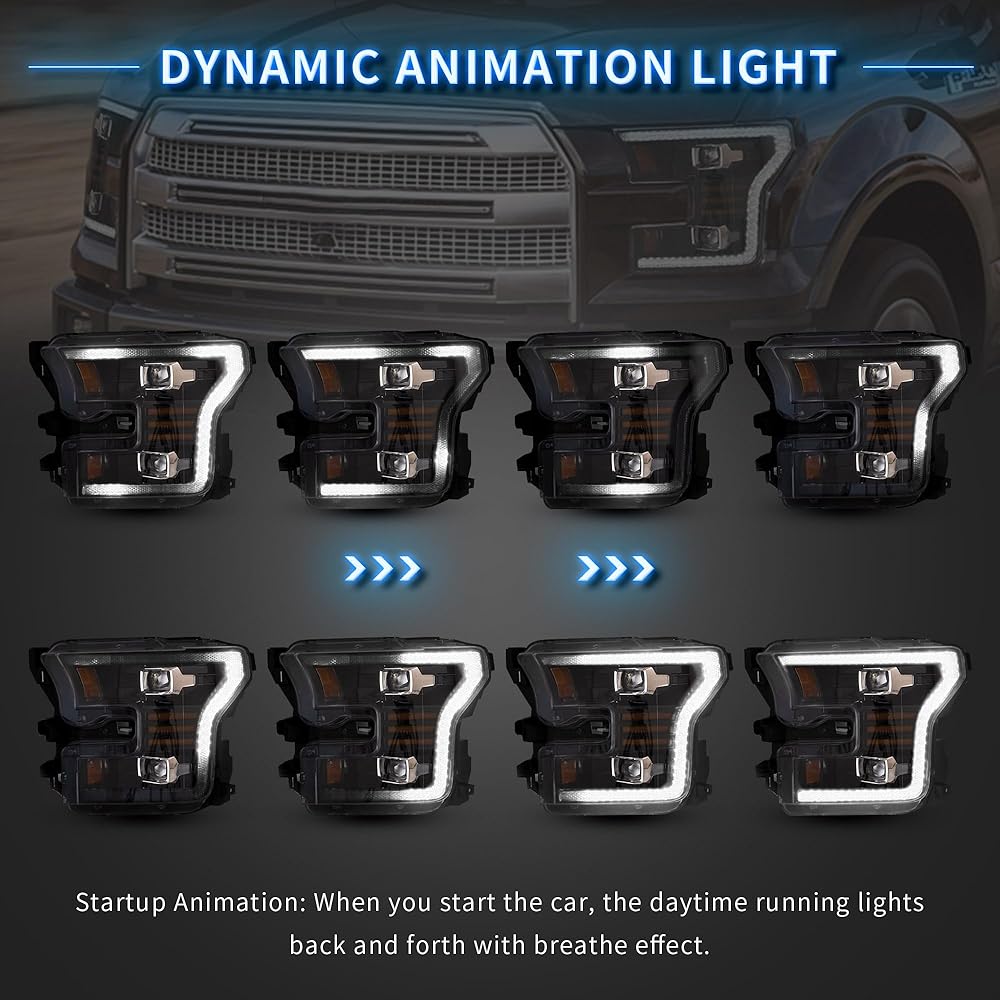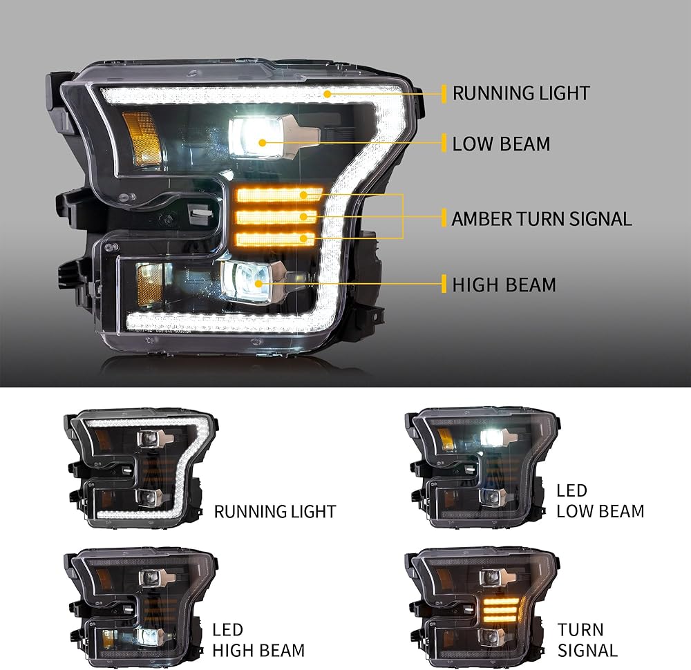 VLAND LED Headlights Compatible For 2015-2017 Ford F150 XL, XLT, Lariat, King Ranch, Platinum, Limited, With Dynamic White DRL, Just Fit For Orignal Halogen version, Not Fit LED version