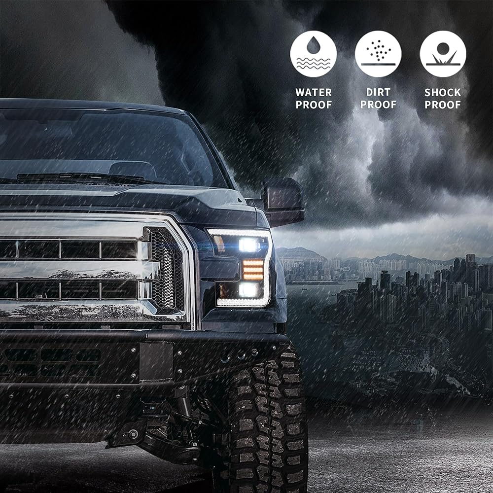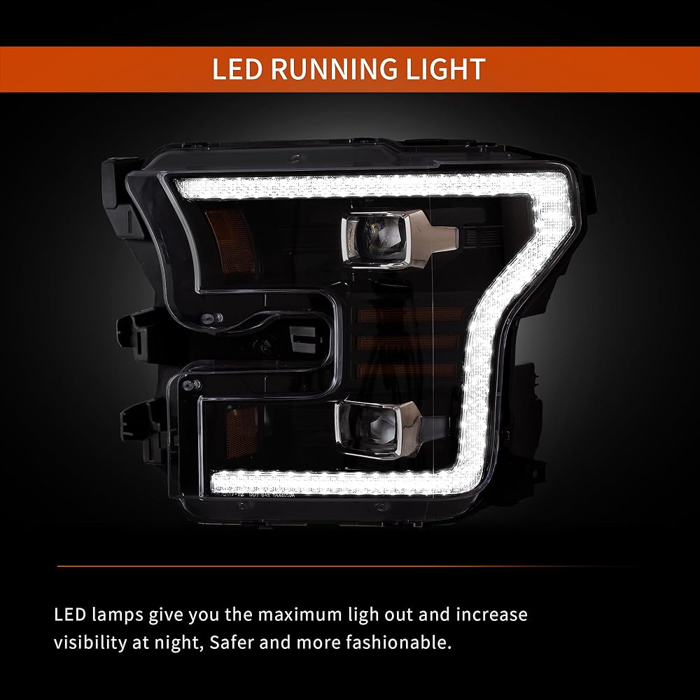 🔷Direct Fitment - Projector LED headlights Compatible for 2015 2016 2017 Ford F150 XL, XLT, Lariat, King Ranch, Platinum, Limited. Just fit for Halogen version, not fit led version.(Don't Fit For F250 /F350 / Ford Raptor). Designed as a perfect replacement for your lights, they install the same way as factory units. (If you can not confirm, tell us and we will help)