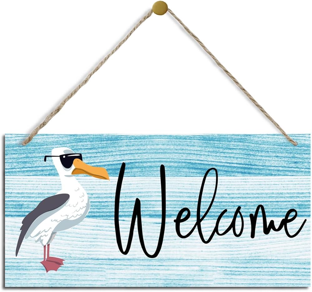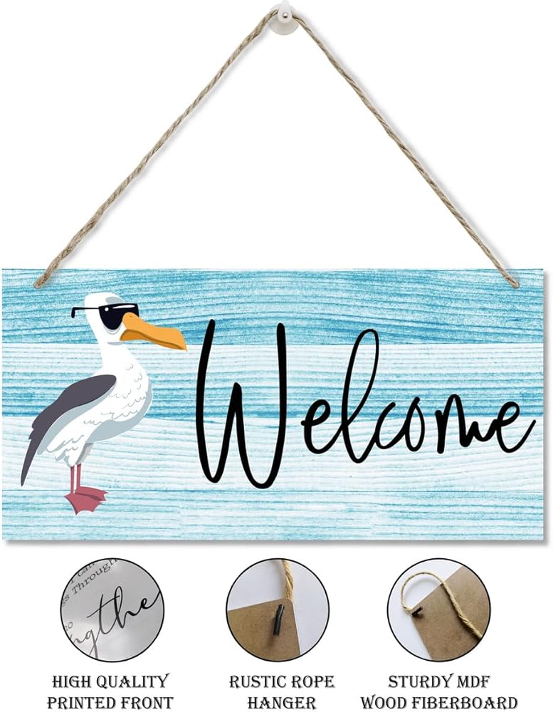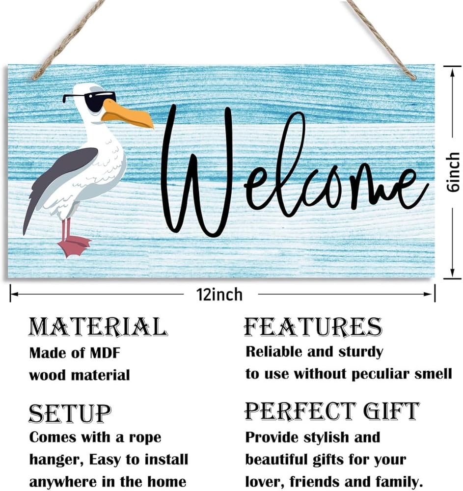 Welcome Wood Signs, Pelican Sign, Decorative Wood Hanging Wood Plaque, Rustic Door Hanger, Wall Decor Art, Rustic Home Wall Sign, Living Room Decor, Farmhouse Decor for Front Door Porch