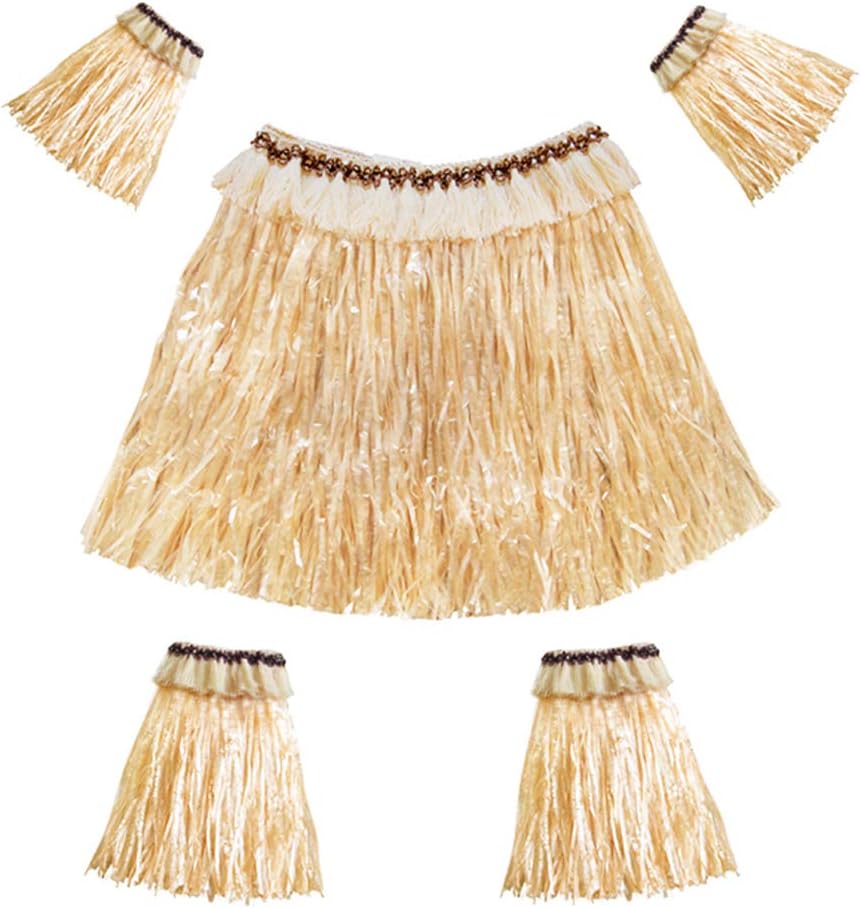 - PACKAGING(5Pcs): 2 * Arm rings + 2 * Foot rings + 1 * Hula grass skirt