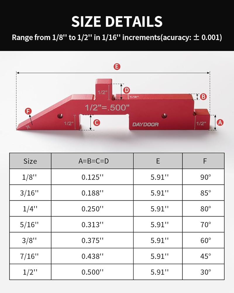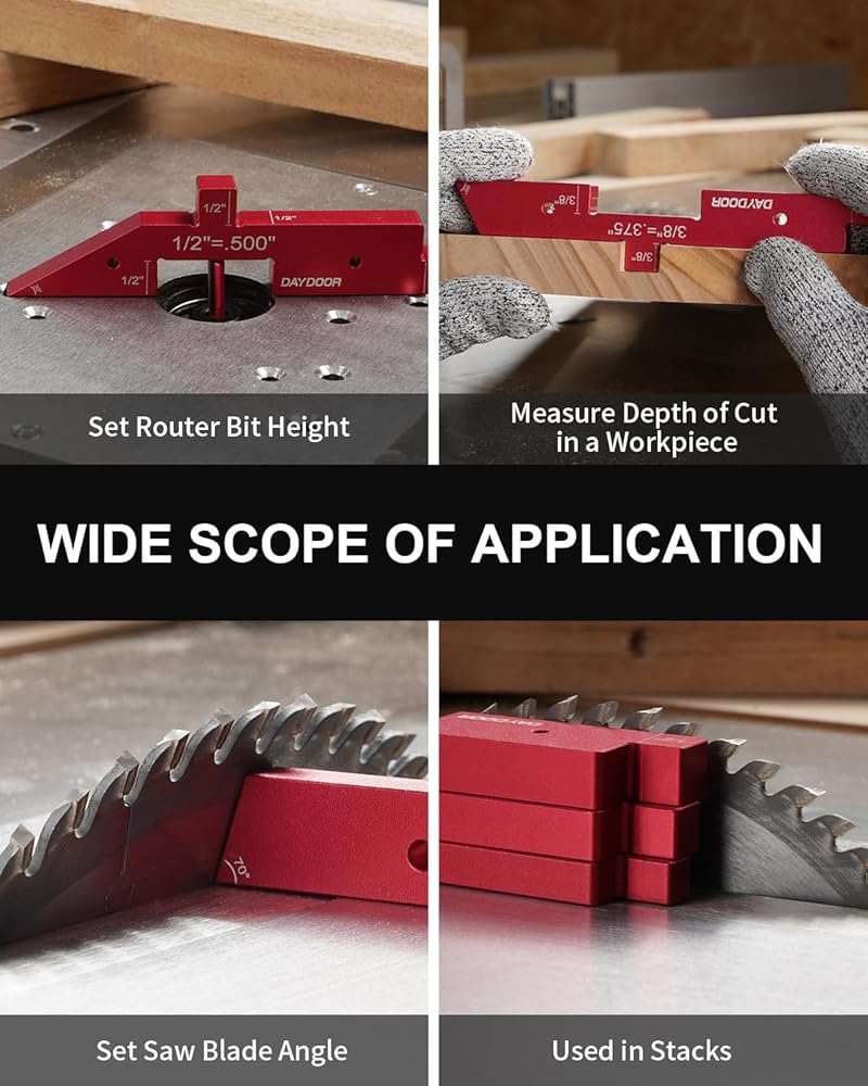 Wildly Used: The variety of thicknesses and angles are just right for any types of projects. Ideal for setting the height of table saw and router bits. They make it quick and simple to measure the angle of table saw blade. Useful at the table saw, bandsaw, and router table, or any other tool that may need a setup block.