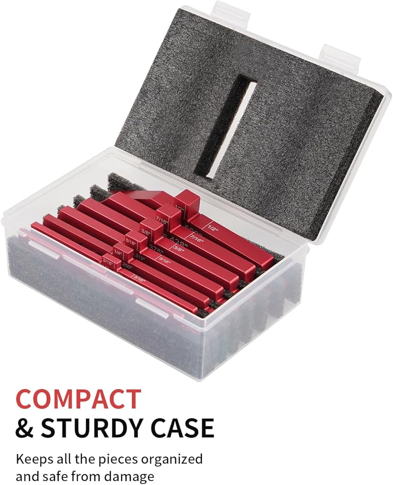 Accurate Setup Blocks Sizes: A sturdy case keeps all the pieces organized, that includes 1/8", 3/16", 1/4", 5/16", 3/8", 7/16", 1/2" high precision bars with lazer engraved measurements.
