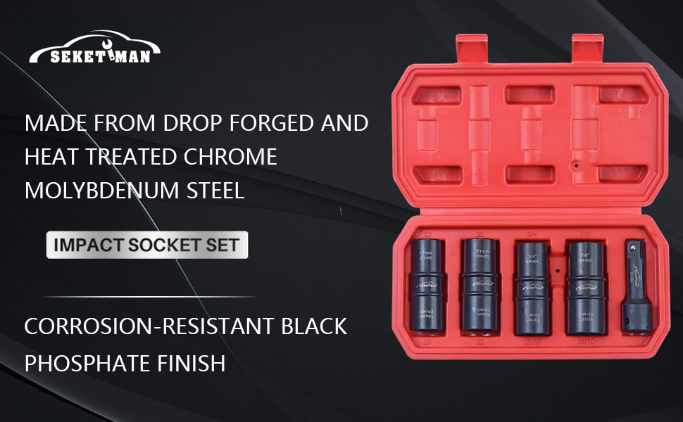 - 【Material】:The socket set is made of premium chrome molybdenum steel with a protective black phosphate finish.