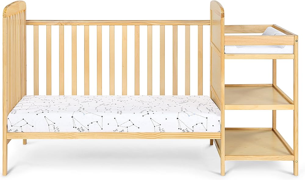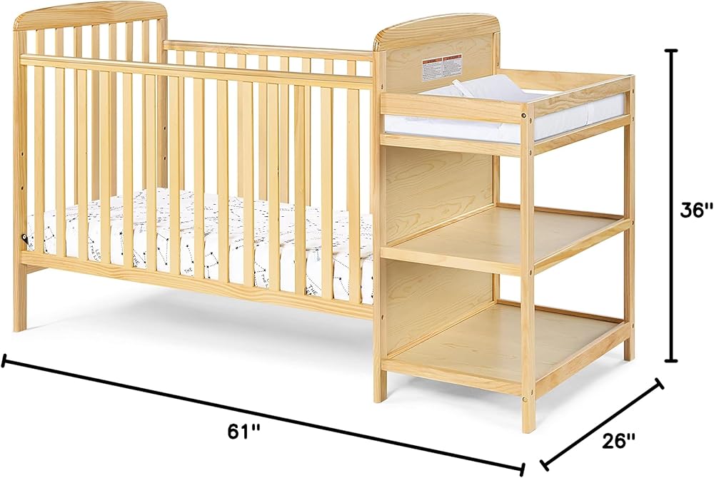The New Ramsey crib by Suite Bebe, with an attached changing table, this is the perfect choice for parents looking to maximize style in a limited space. Its clean lines and four classic finishes make this collection a fit in any nursery. The attached changing table provides convenient closeness to the crib as well as ample storage for all of your baby's essentials. Once your child outgrows their crib, easily convert the crib into a day bed or toddler bed with the additional purchase of the toddler guardrail. Once you no longer need the crib, the changing table can detach and stand alone as a shelving unit.
