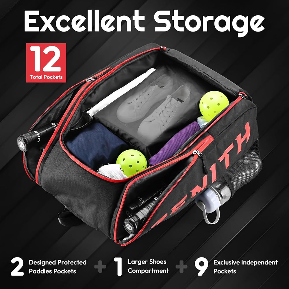 Superior Pocket Partition & Large Capacity: A11N pickleball backpack, born for tournament player, provides ample storage space with 12 pockets. Safely store your paddles, shoes, Ipad, water bottles, sunglasses, keys, clothes, accessories, and valuables.