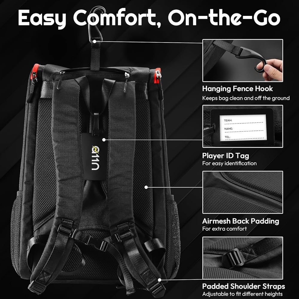 Portable & Recognizable: The hidden fence hook feature enables easy attachment of the bag to the pickleball court, keeping it within reach during your game. Meanwhile, the backpack includes a specially designed ID tag, which makes it easier for the user to locate their bag on the court.