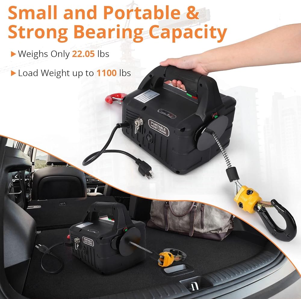 Electric Hoist 110 Volt, 1100 LBS Portable Winch with Wire and Wireless Remote Control, Lifting Speed is 16 ft/min, Suitable for Lifting in Factories, Warehouses, Construction Sites