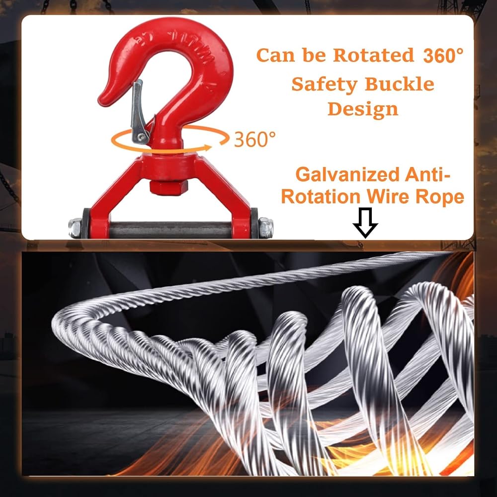 ➤【Safety Hook】The upper and lower hooks are made of high-strength forged steel, which can be rotated 360 degrees for easy hooking of objects, and the safety lock design can prevent heavy objects from falling off.