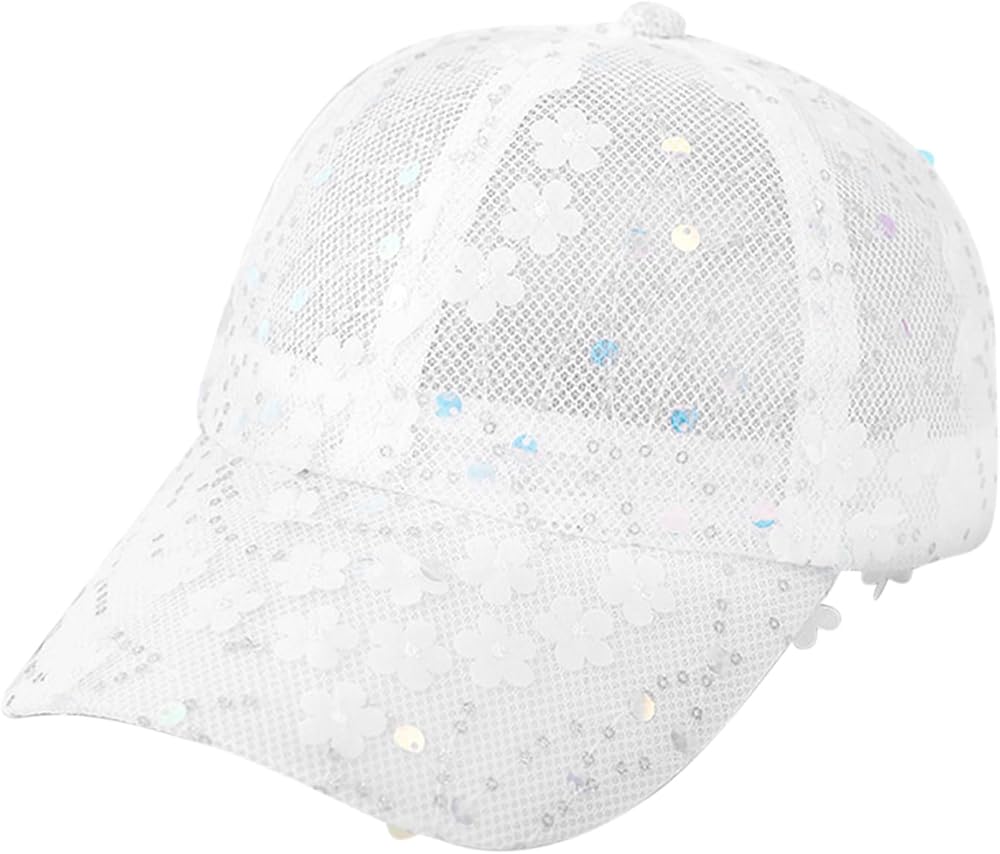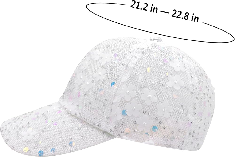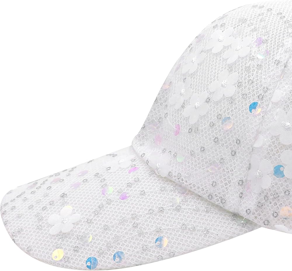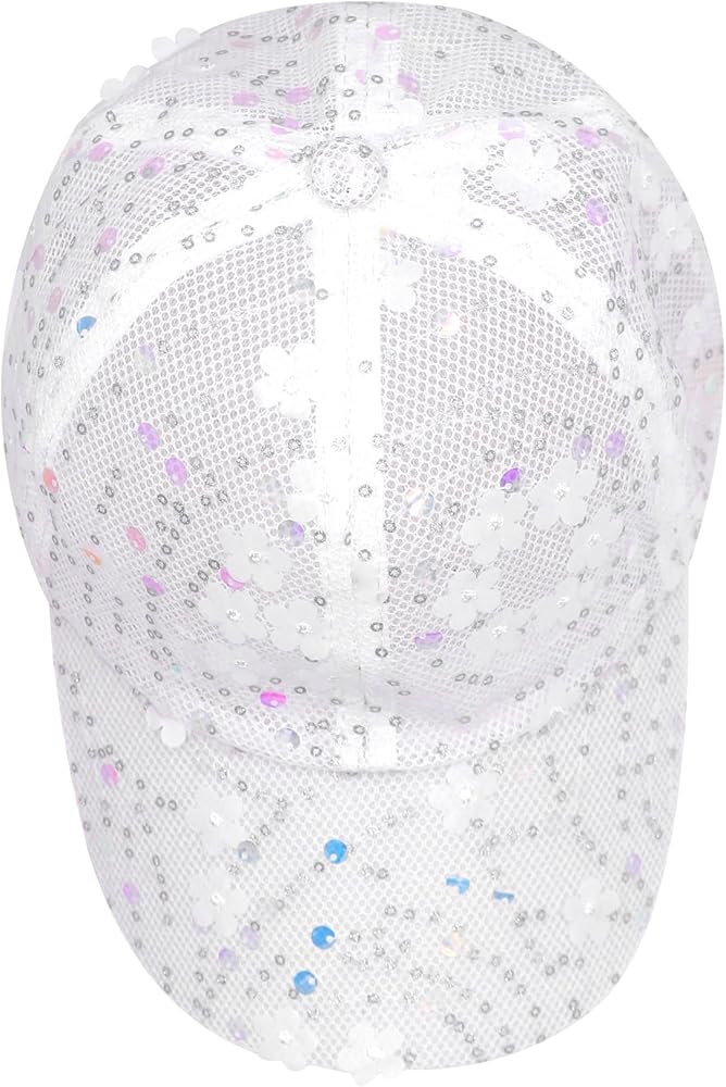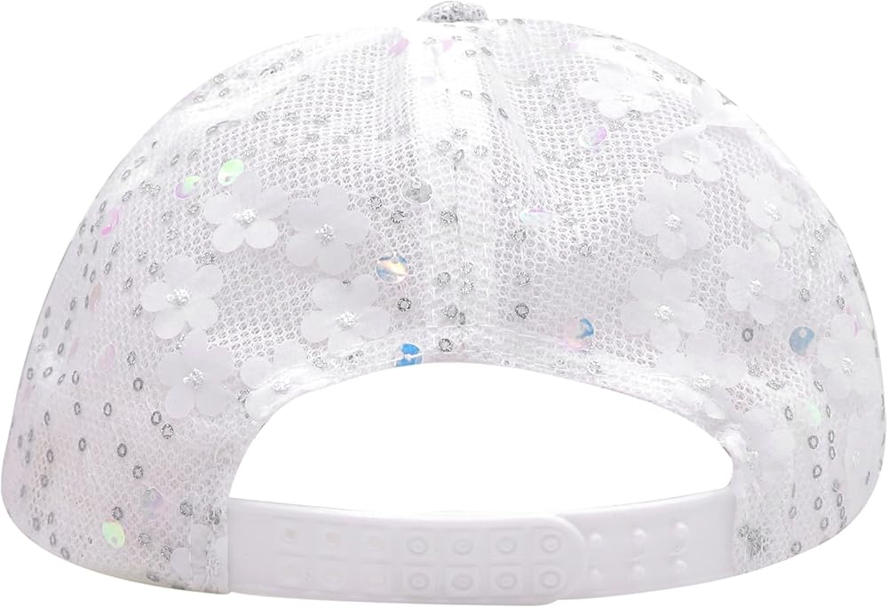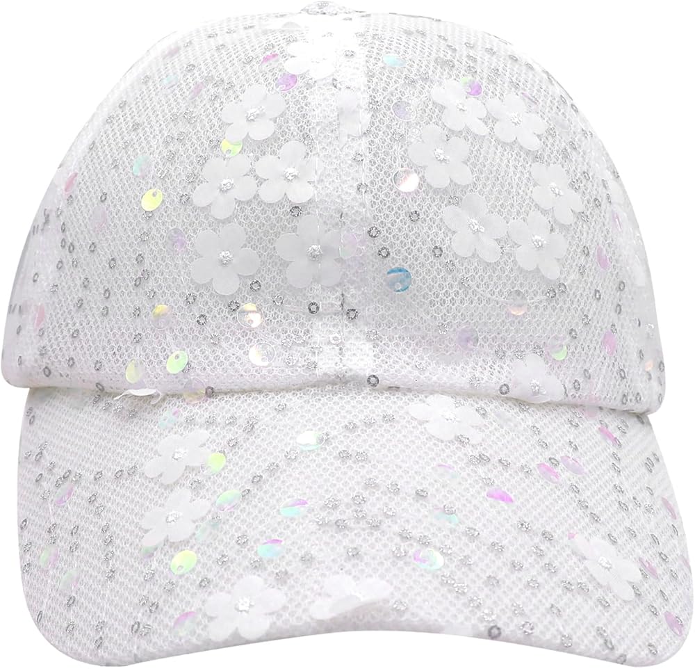 Shiny Sequins Baseball Cap for Women Girls Cute Flowers Breathable Mesh Trucker Hat Adjustable Summer Outdoors Sun Cap