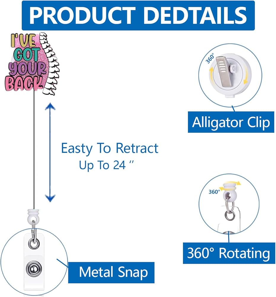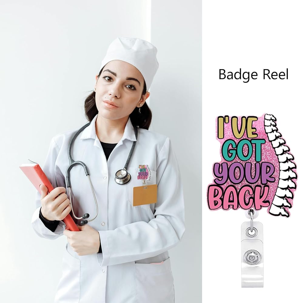 I Got Your Back Funny Nurse Badge Reel Holder Retractable Badge Clips Cute Nursing Badge Reels Retractable for Nurses Medical Badge Gift RN LPN CNA ID Card Badge Holder Office Accessories