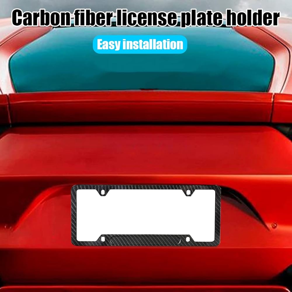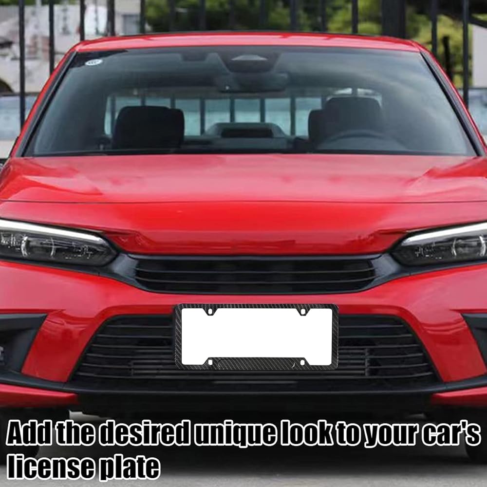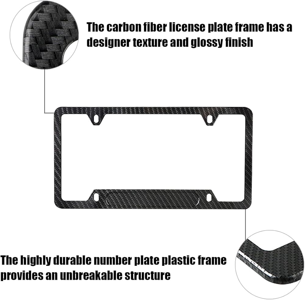 【Stainless Steel】: This car license plate frame is made of stainless steel, waterproof and not easy to rust, can withstand the wind and rain for a long time. Adding carbon fiber surface through water transfer technology makes it more beautiful in appearance. The edges are polished smooth and will not scratch the palm of your hand or the car.