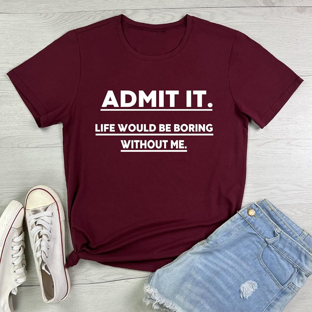 BLACKMYTH Casual Tops for Women Crewneck Admit IT Graphic T Shirts