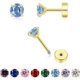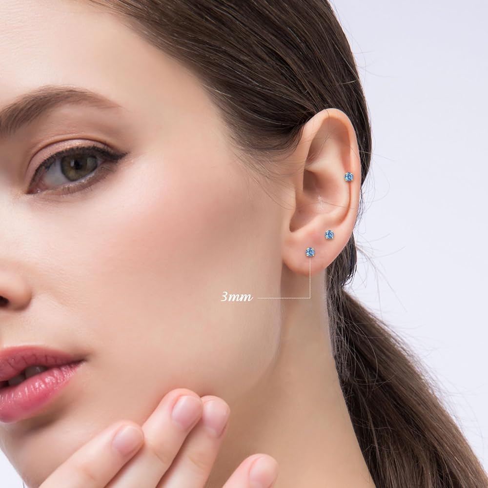 ✔Hypoallergenic Material: Tiny earrings are made of surgical steel,the golden style is plated with 14k gold, free of nickel and lead, and are safe for sensitive ears. They are adorned with 3mm various colored cubic zirconia crystal diamonds. You can wear it while working, sleeping, showering, and exercising. Its back is designed with a screw buckle, which is sturdy and durable, and won't be easily lost.