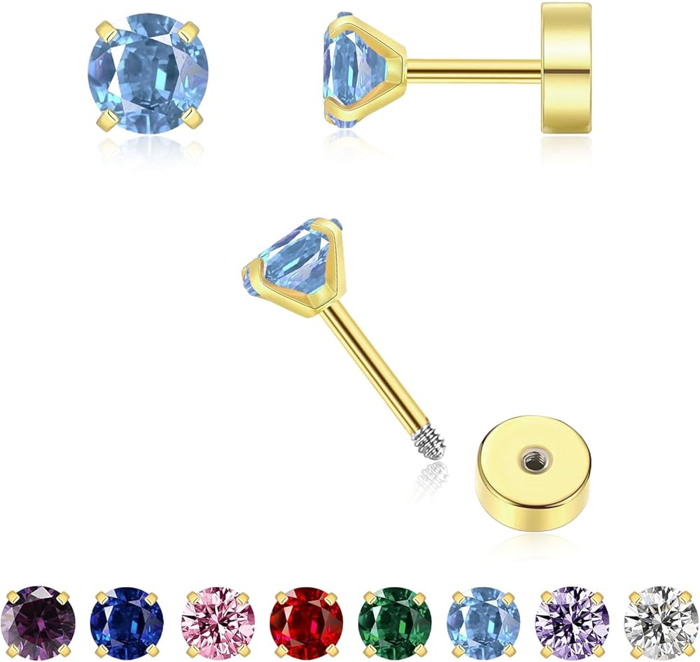 ✔Flat Screw Back Earrings for Women Men: Are you still worried about daily earring combinations? This flat back cartilage earings can wear as cartilage earings, helix earings, trags piping jewelry, conch earings, second hole earings, ear piping studies, or stacking earings. They look small and shiny, and can be paired with your other earrings at will.