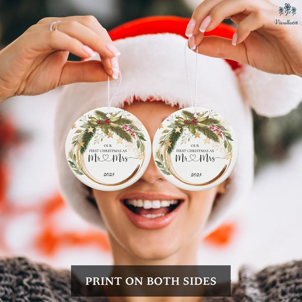 🎅 New Ornaments Wedding: Add a touch of elegance to your décor with these ornaments wedding pieces, perfect as a gift for married couples Christmas celebrations! Each first year married ornament is permanently laminated directly onto the Christmas ornament, creating an image that does not peel or fade. The best Christmas gift for couples, including an ornament first Christmas married, makes this wedding Christmas gift ideal for couples gifts for Christmas, such as a Mr. and Mrs. ornament or a Christmas ornament for newlyweds.