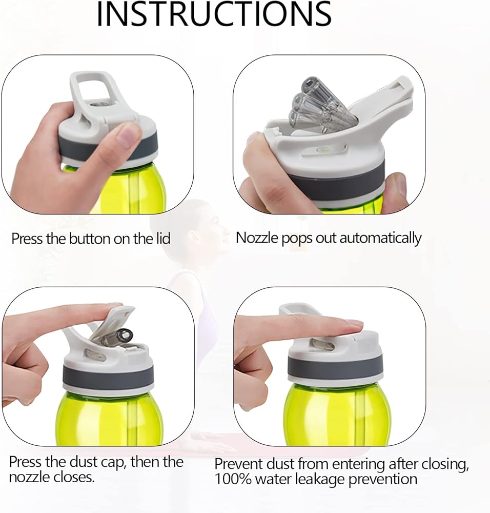 This water bottle is made of Tritan material of Eastman company and will not produce bisphenol-A. It is an absolutely safe water bottle. The suction nozzle is made of PS plastic, has good durability. The bottle cover can be opened by pressing the key. It can be used with one click.