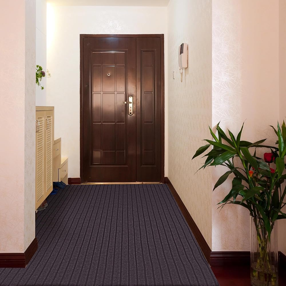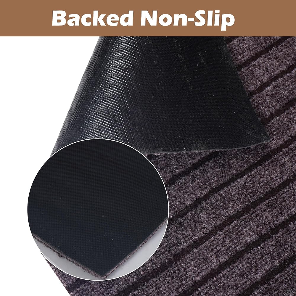 Water Absorb&Dust Removal - Surface of striped entrance carpet is unfading polypropylene blend. Grooved texture can absorbs and traps rain, snow, dirt, mud,sand and any other debris quickly! keeps your room drying and clean.