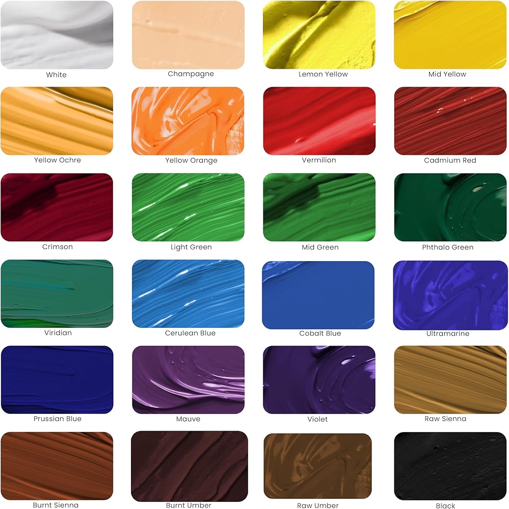 EXCELLENT COLOR PALETTE OIL PAINT SET: 24 eye-catching and vibrant colors that bring out great visual results. Best for painting in canvas, pads, boards, panels or paper