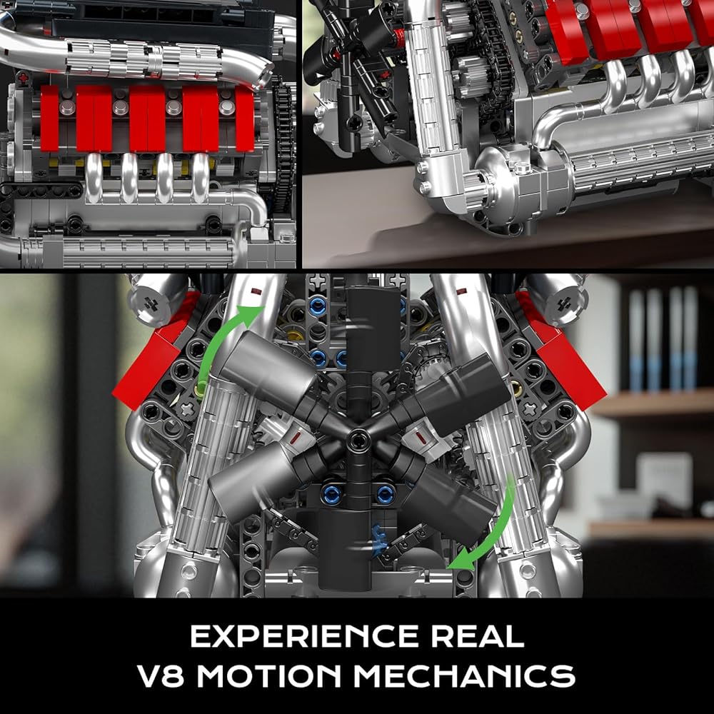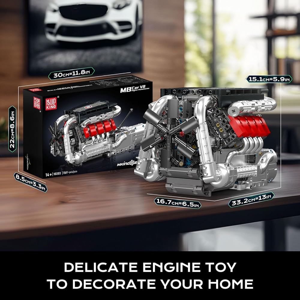 Mould King 10203 V8 Engine Model Kit that Works - Build Your Own Mini Engine Build Blocks, STEM Mechanic Engineering Construction, Car Engine Replica Set for Adult (1169 Pcs)