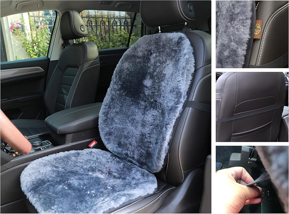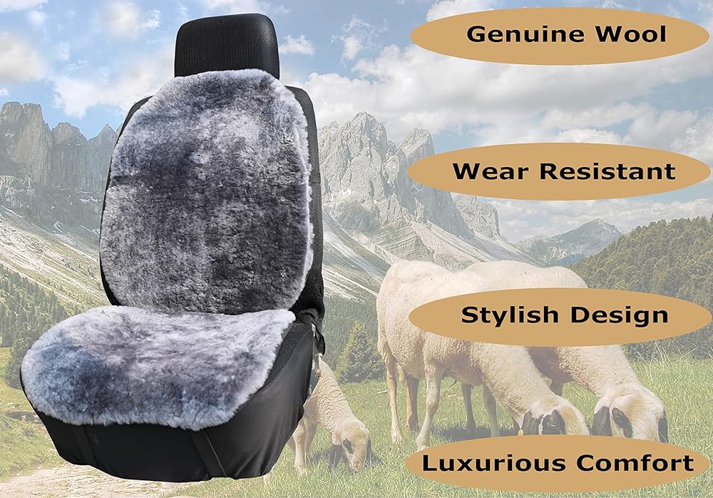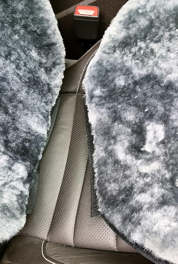 PRODUCT MATERIAL: Our sheepskin car seat covers are made of 100% Genuine Australian Lambskin Frontside. Sheepskin wool is a soft and hollow fiber that allows for maximum breathability which regulates body temperature and keeps users comfortable and dry. This sheepskin seat cover provides superior softness, comfort, and relaxation. It keeps cool in the summer and warm in the winter.