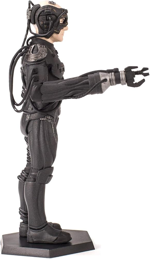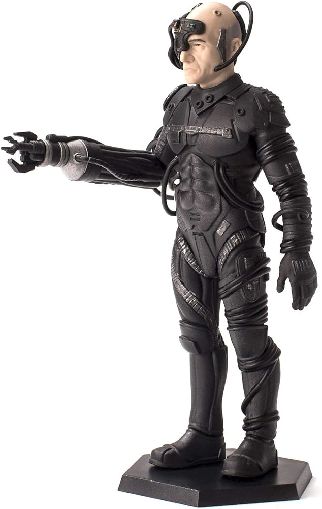 In the Star Trek universe there has never been a more formidable foe than the Borg. With a hive mind society where the individual has no value and innovation comes only through the assimilation (theft and destruction) of other cultures, The Borg are a dark reflection of the Federation, making them the perfect nemesis. When captured by this cybernetic collective, Captain Jean-Luc Picard of Star Trek: the next generation fame, Is transformed into locutus, the half-man/half-machine spokesman for this most deadly foe. No one can resist this mini master figure of locutus of Borg. The first of a series of Star Trek figures in new larger, more detailed "Platinum Edition", the 1: 12 scale hand-painted statue stands approximately 6 inches tall and features the Authentic likeness of Patrick Stewart as the transformed locutus. It comes in a full color 5-panel box with a box cover and window display. One look at the amazingly detailed locutus figure and you too will be assimilated!