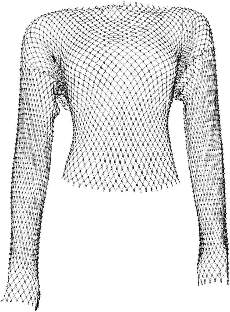 Rhinestone Mesh Top for Women Sparkly Mesh Top See Through Mesh Cover Up Bikini Boat Neck Long Sleeve Top