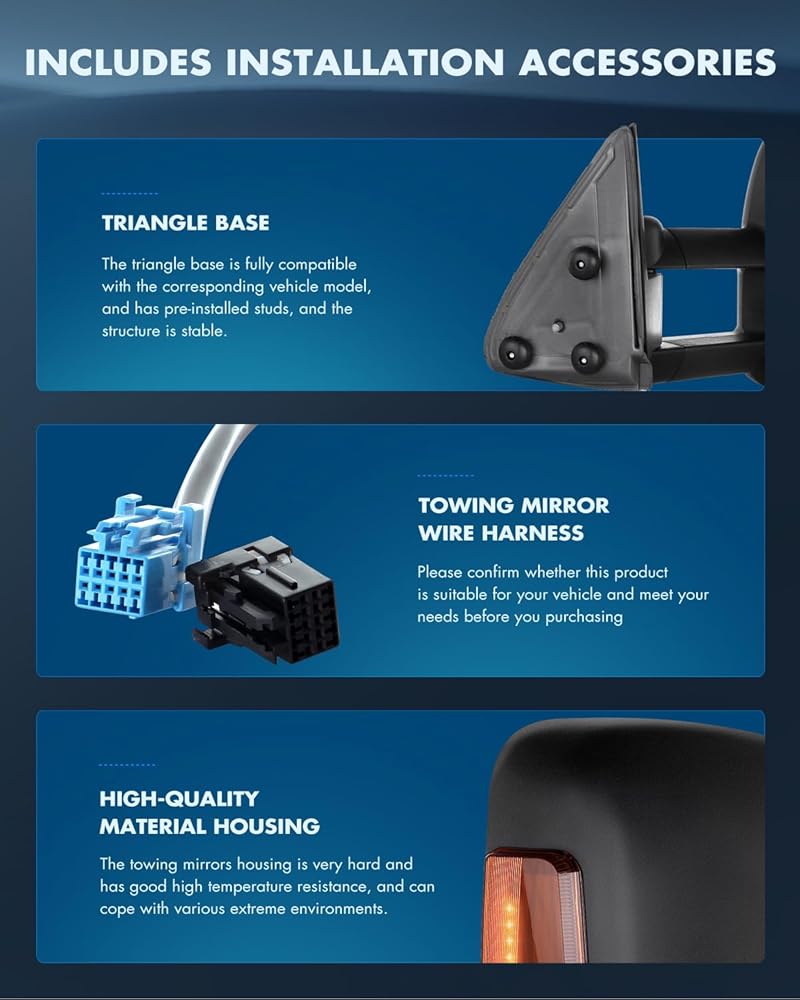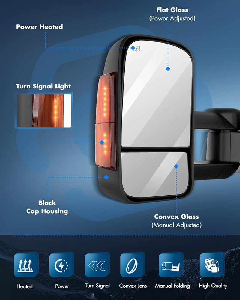 🎁 WHAT YOU GET - A Pair of Towing Mirrors(Include Left Side and Right Side).