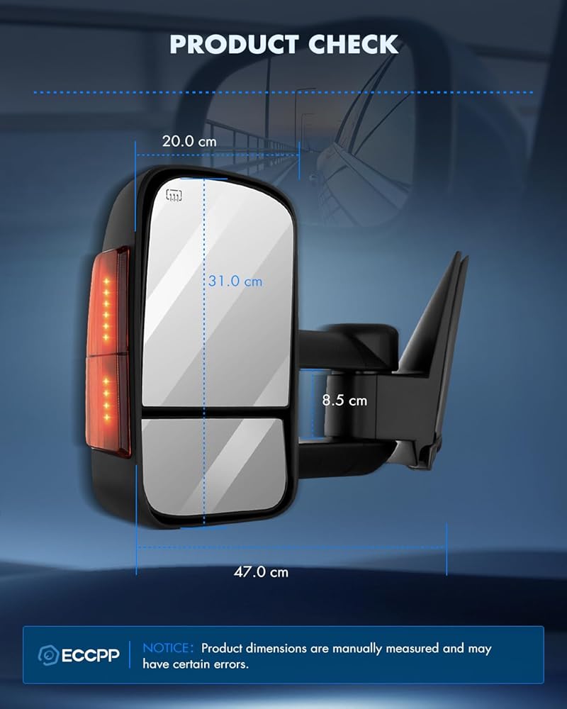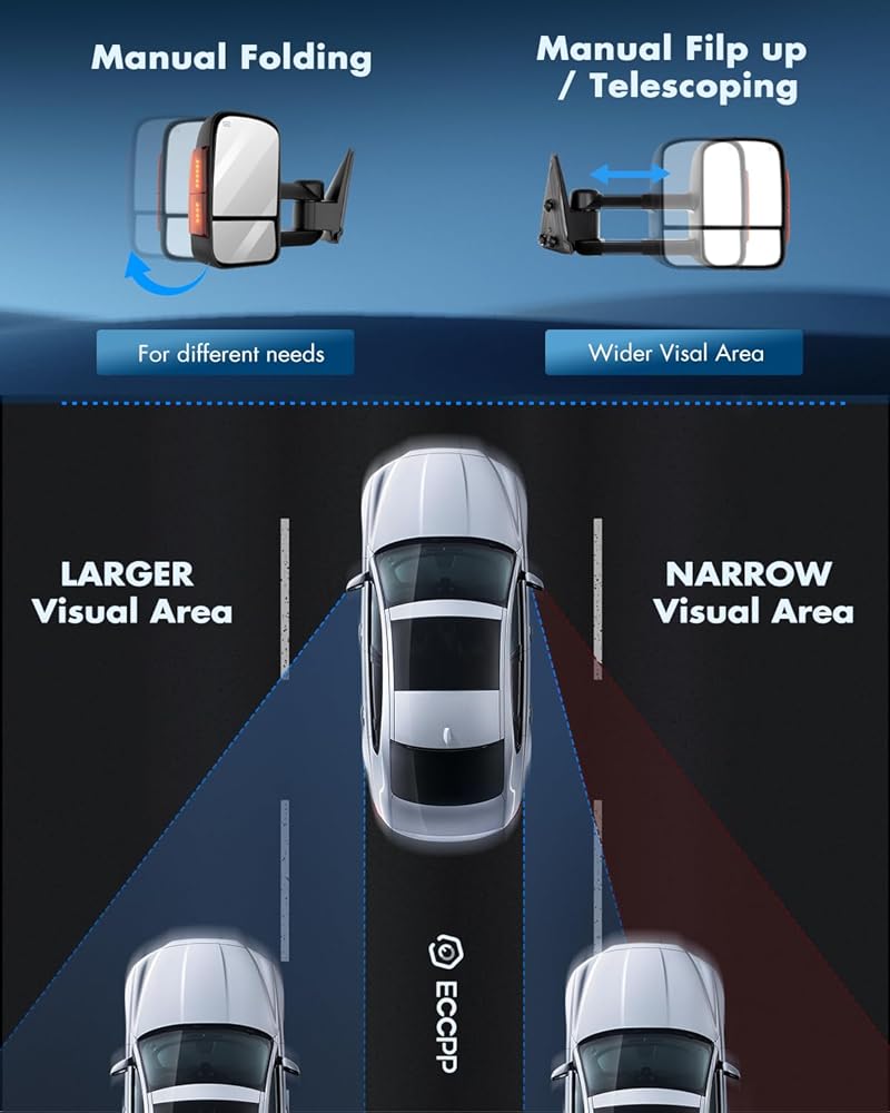 🎁 UPGRADED MIRRORS - The towing mirrors provide better and wider angle of rear view, improves visibility and reduces blind spot. Upgrades on road security.