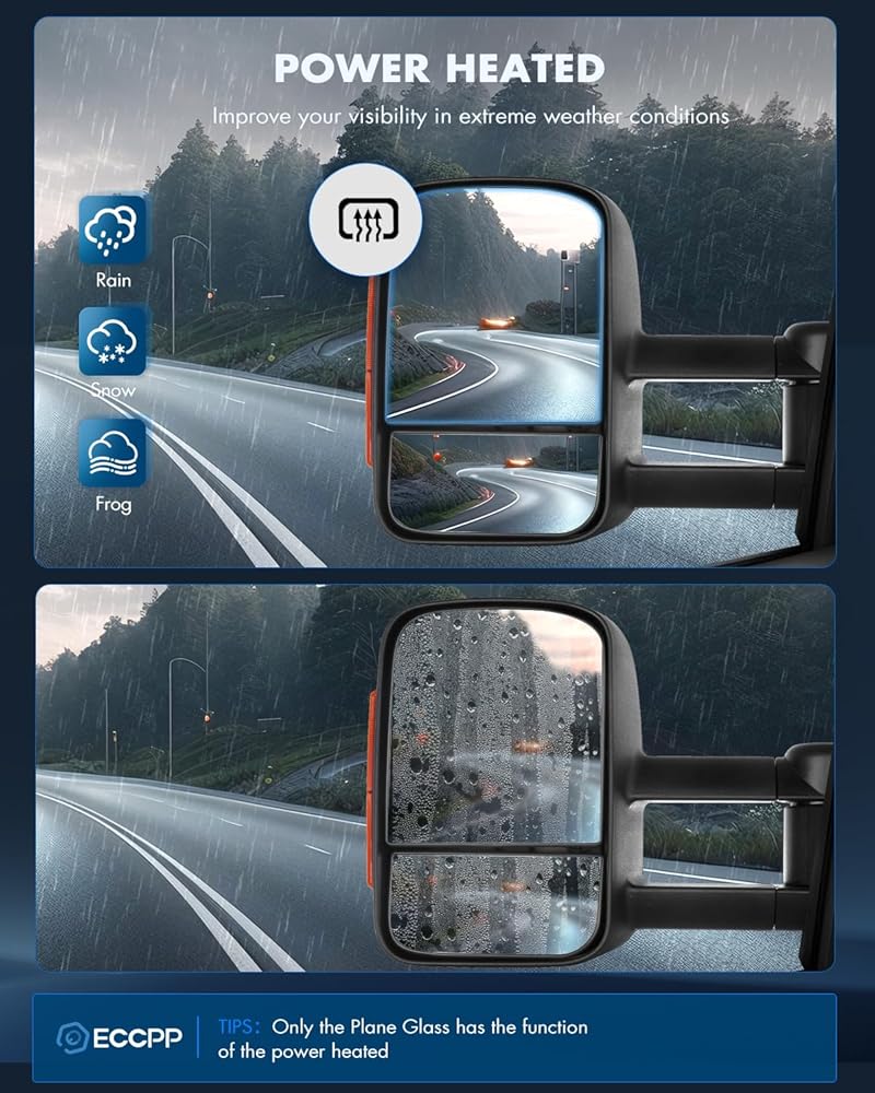 🎁 MULTIFUNCTION - manually and telescopically extend,Big Glass are power adjustable,with heated defrost function and signal light.
