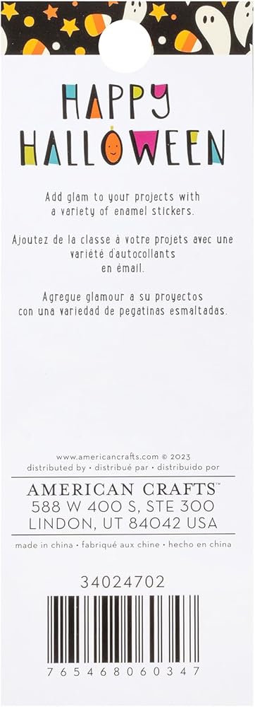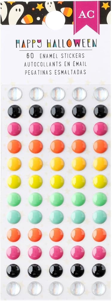 CELEBRATE HALLOWEEN IN STYLE: The Happy Halloween 60-Piece Enamel Sticker Set by American Crafts is your ticket to adding a playful and festive touch to all your Halloween-themed decorations and crafts!