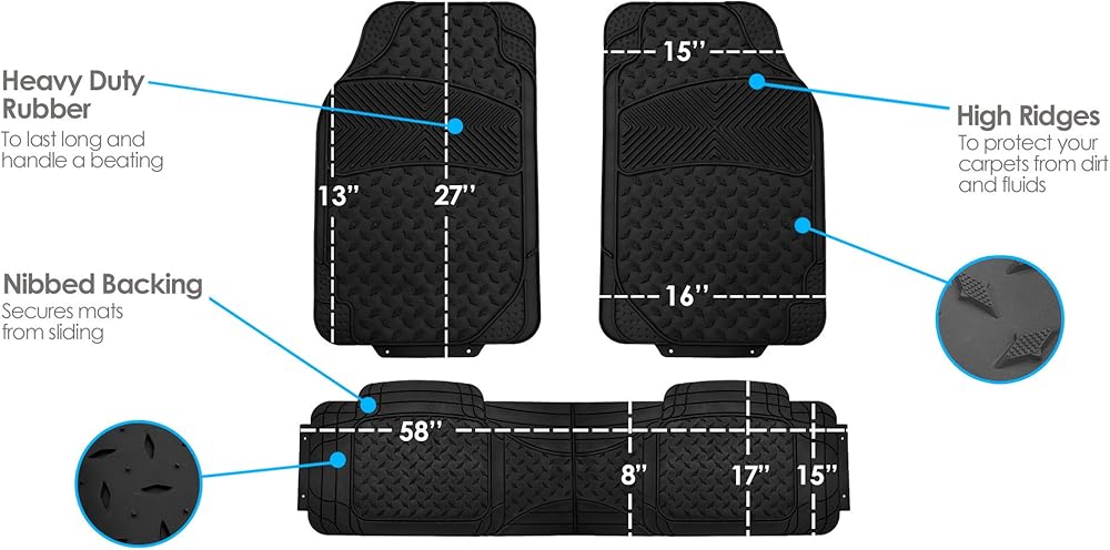 Dimensions: Front: 27.5""L x 17.8"W, Rear: 58.3"L x 14.8"W Cargo Mat: 32"L x 48"W