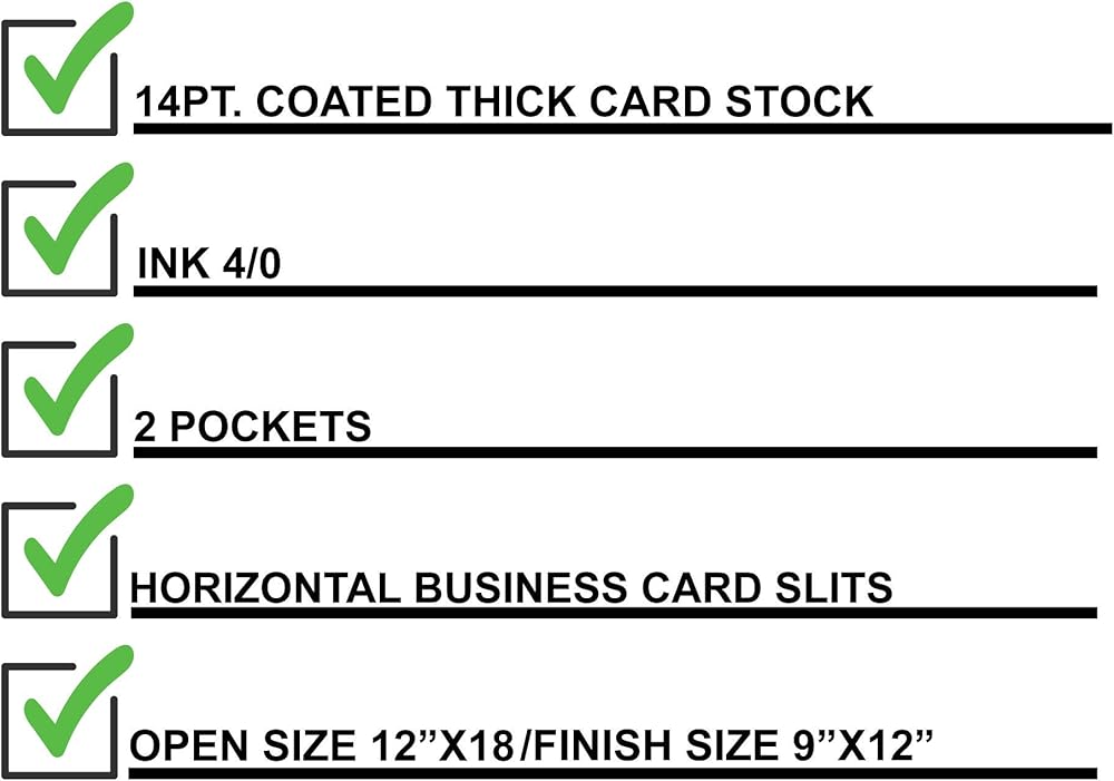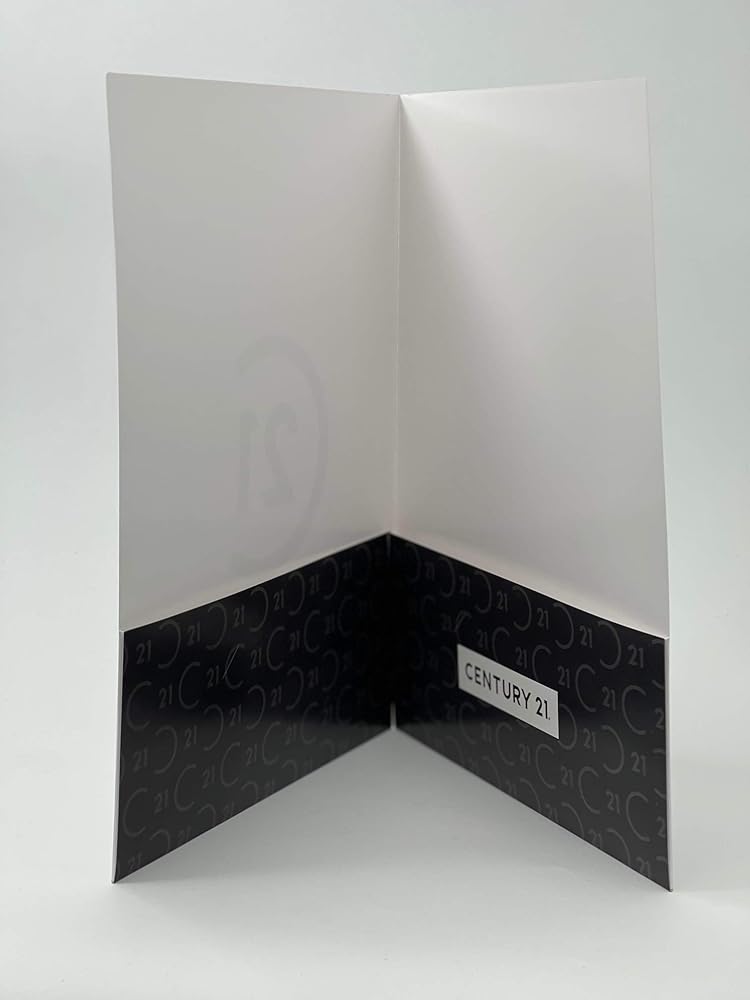 Our Century 21 presentation folders feature the Century 21 logo and are perfect for making good first impressions or for new agent packets. Our professionally printed folders will help you outshine the competition. Deliver a great presentation with a branded Century 21 folder, an investment that is sure to pay off! These Century 21 folders come with a high quality offset printed design as well as: Open Size: 12″ x 18″ Finish Size: 9” x 12” Pockets: 4” / 2 pockets Slits: Horizontal business card slits, both pockets Paper: 14pt. Coated 2 Sides Cover Ink: Full color outside and on pockets, 4/0 Coating: Gloss Proudly Made in the USA.
