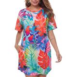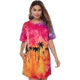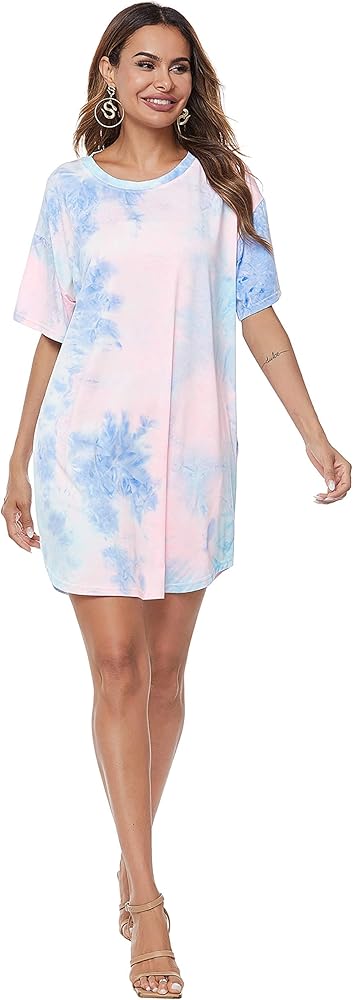 PREMIUM MATERIAL: This plus size tie dye dress is made of soft stretchy cotton blend fabric, the summer short sleeve womens tee shirts dress have good softness and elasticity, keep lightweight and comfortable.