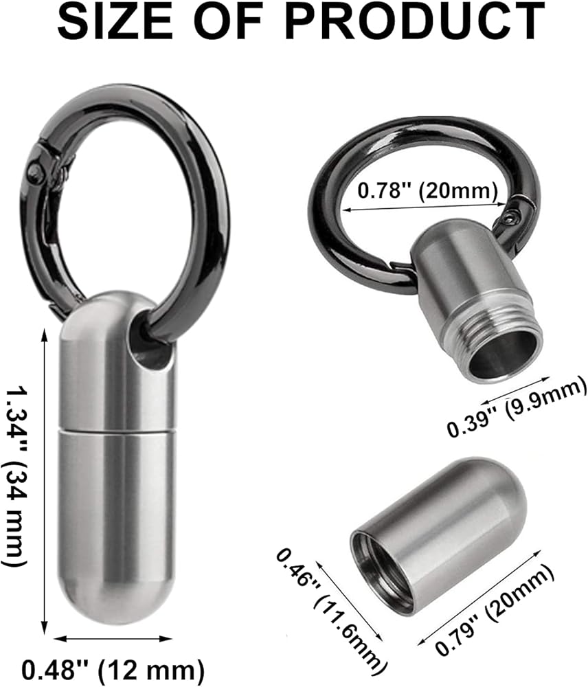 TITANIUM MATERIAL:The keychain pill holder is made of titanium.It is high hardness,lightness,high temperature resistance,durable and virtually indestructible.And the titanium material will not chemically react with other pills, which is a good protection for medicine.