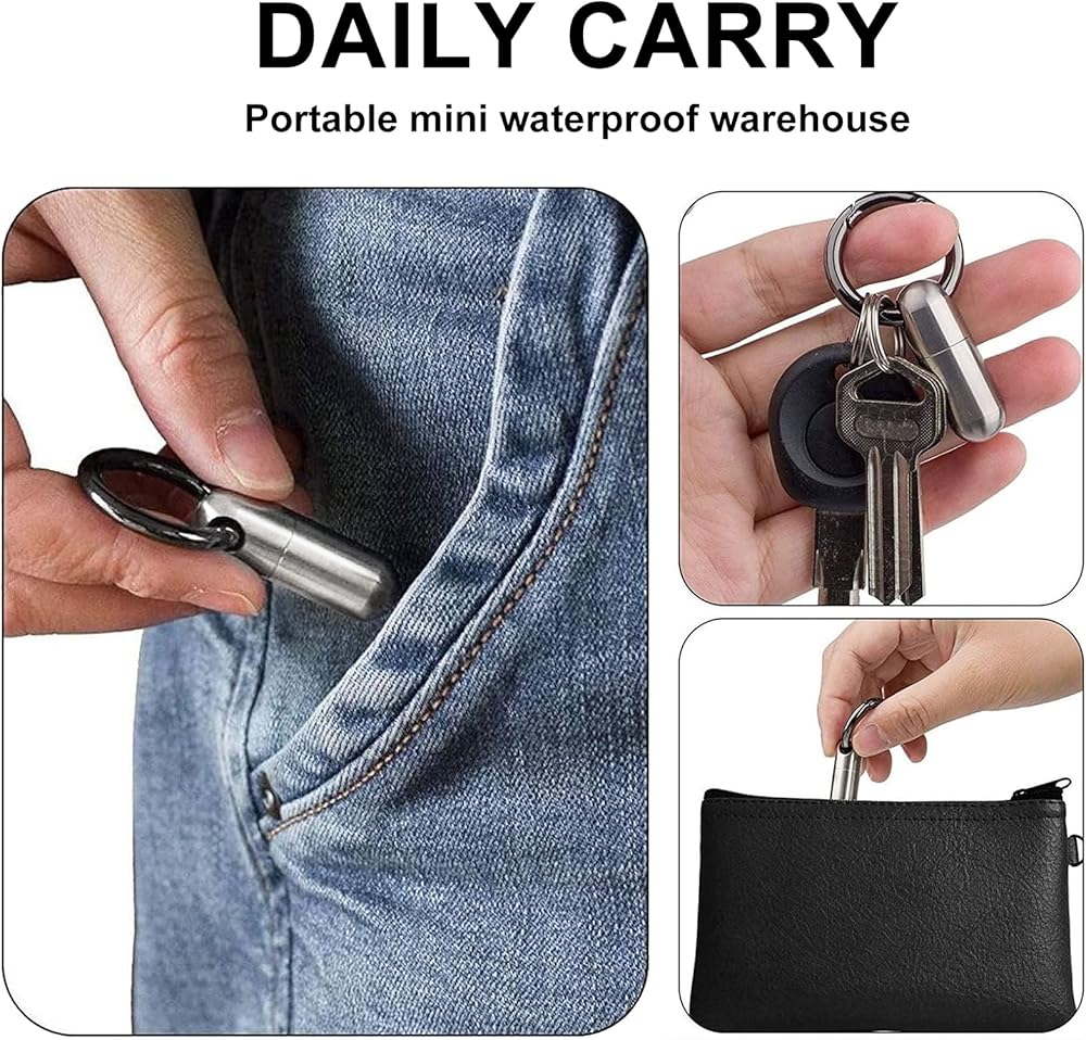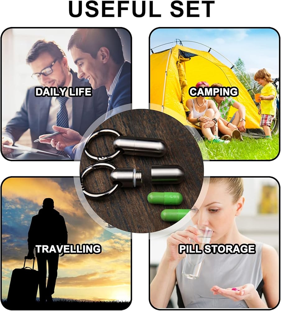 KEYCHAIN PILL CONTAINER:We offer an extra keychain key ring for the small pill holder.It can be easy to hang to keychain/purse/wallet /pocket/bags,occupies less space when you go out for traveling camping or other activities.
