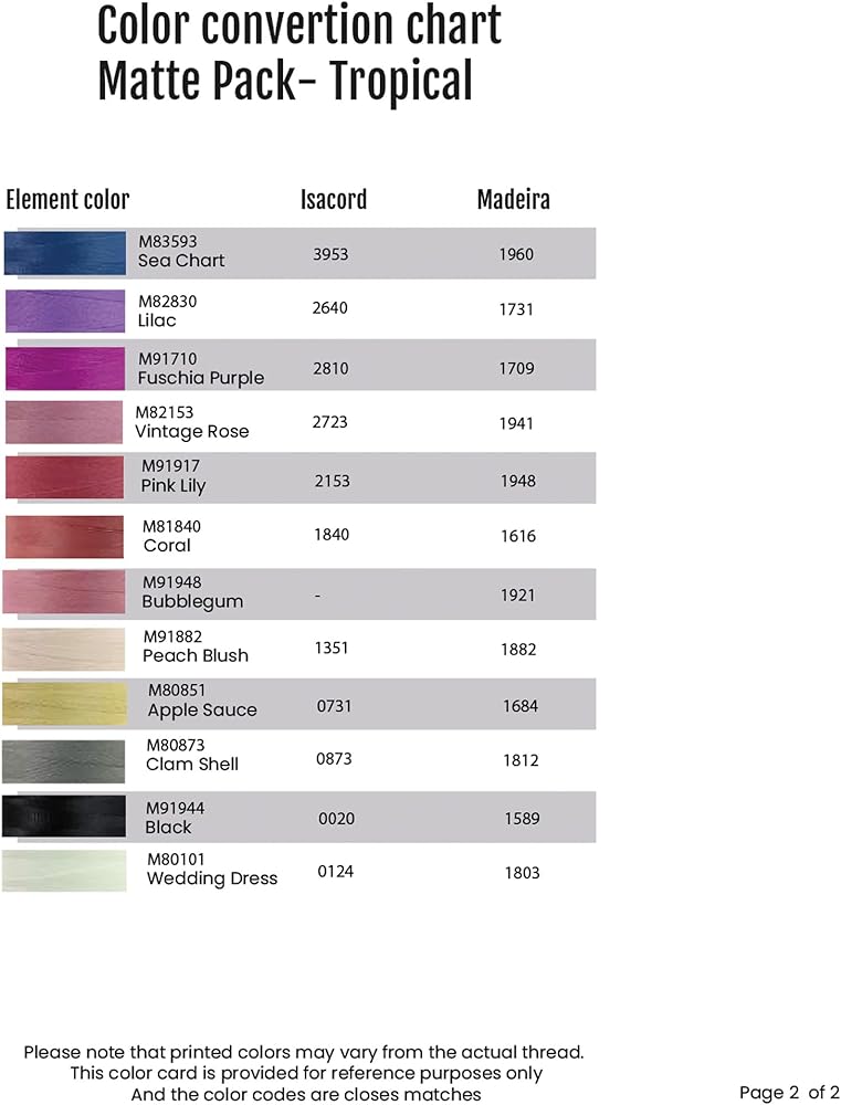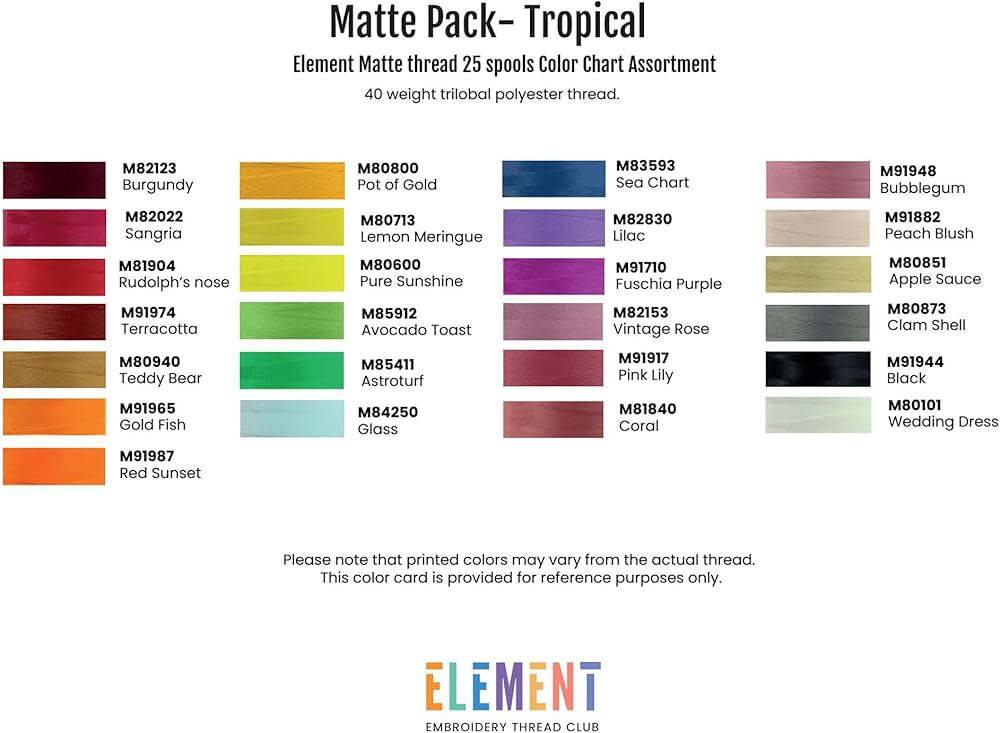 ELEMENT Tropical Pack | Tray of 25 spools | Machine Embroidery Thread | 1000m | 40 wt | Matte | Compatible with Brother Babylock Janome Singer Pfaff Husqvarna Bernina Sewing Machines