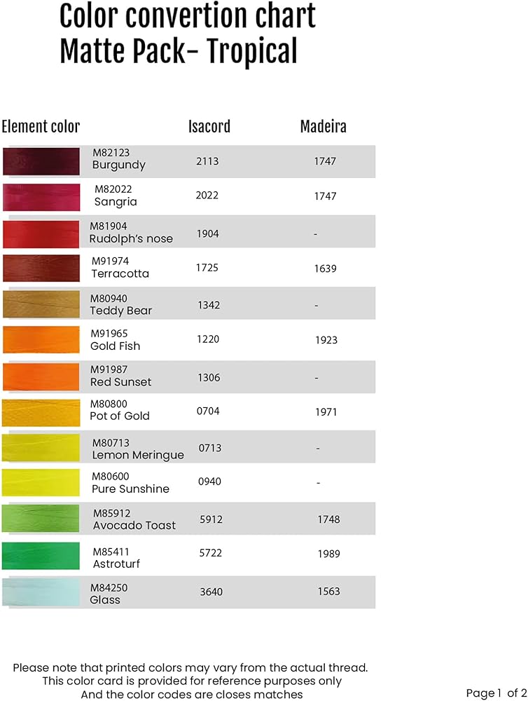 - Tropical Pack features 25 spools of brilliant tropical colors