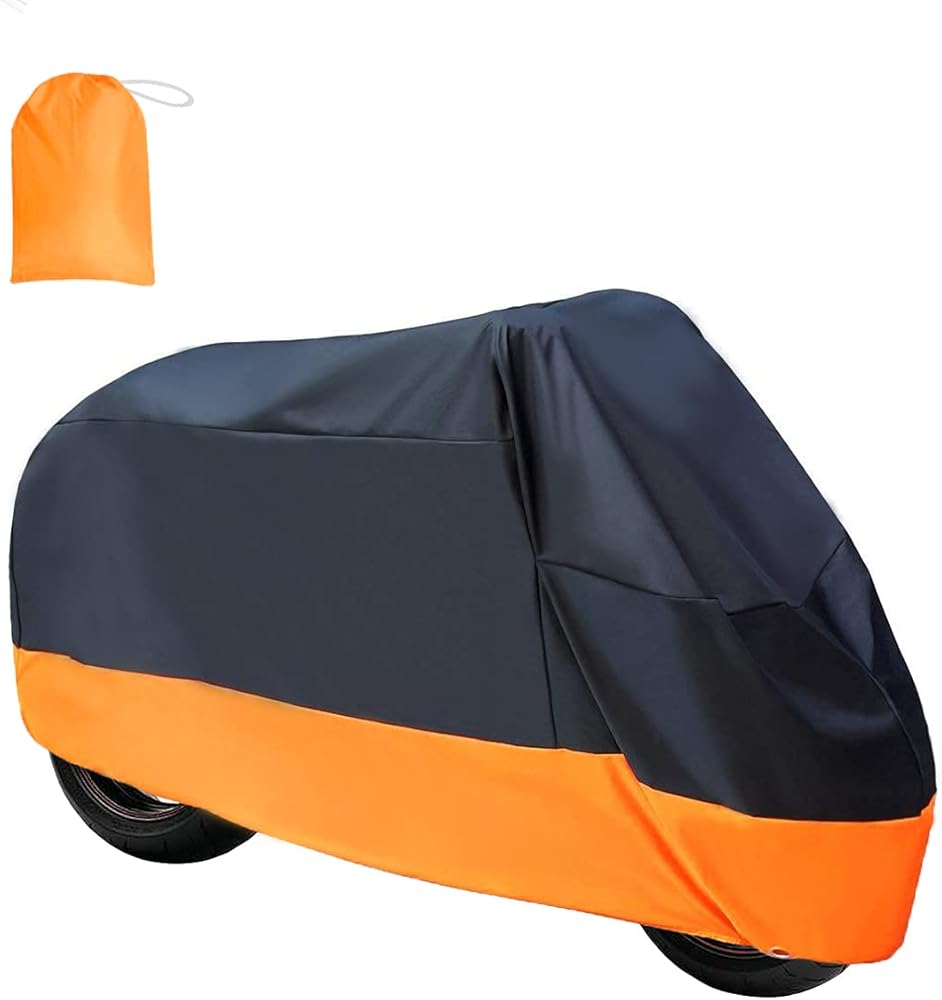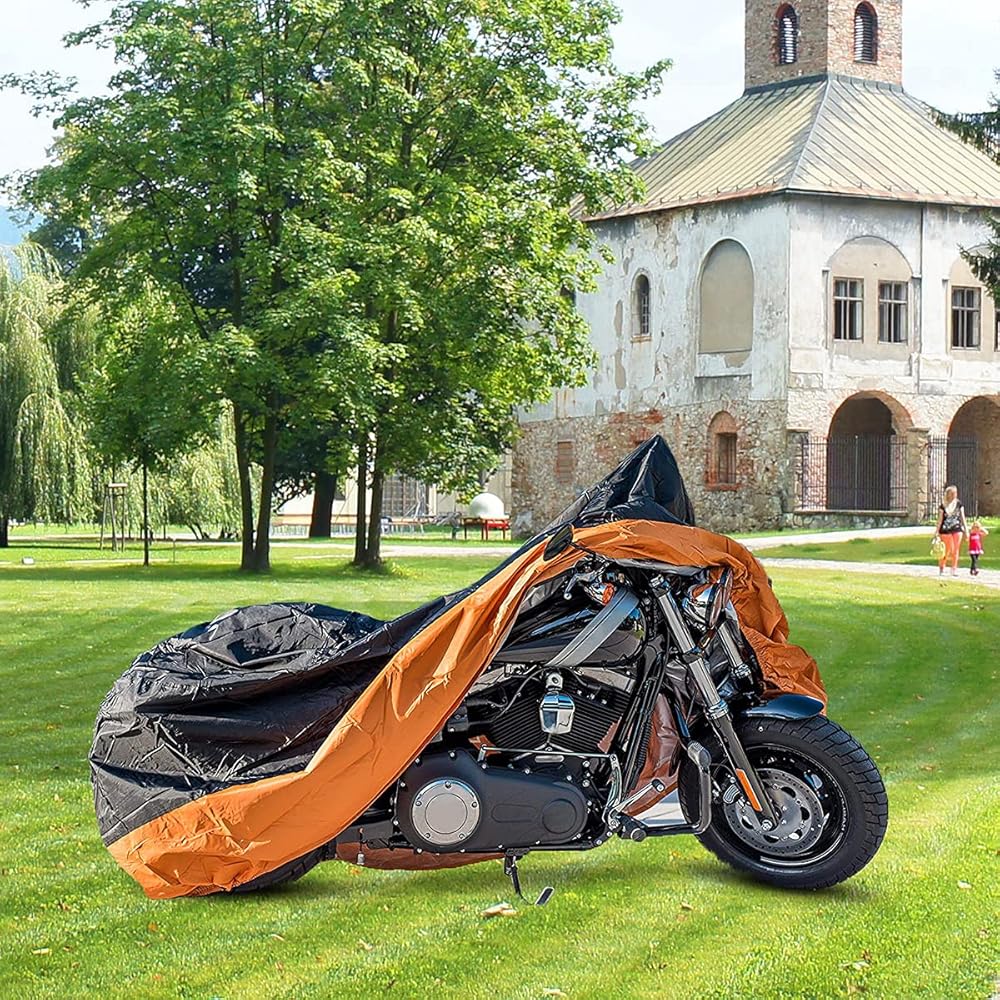 Black Waterproof Motorcycle Cover All Season Outdoor Universal Weather Protection with Lock-Holes & Storage Bag Motorbike Vehicle Cover Universal Fit for Different Motorcycle