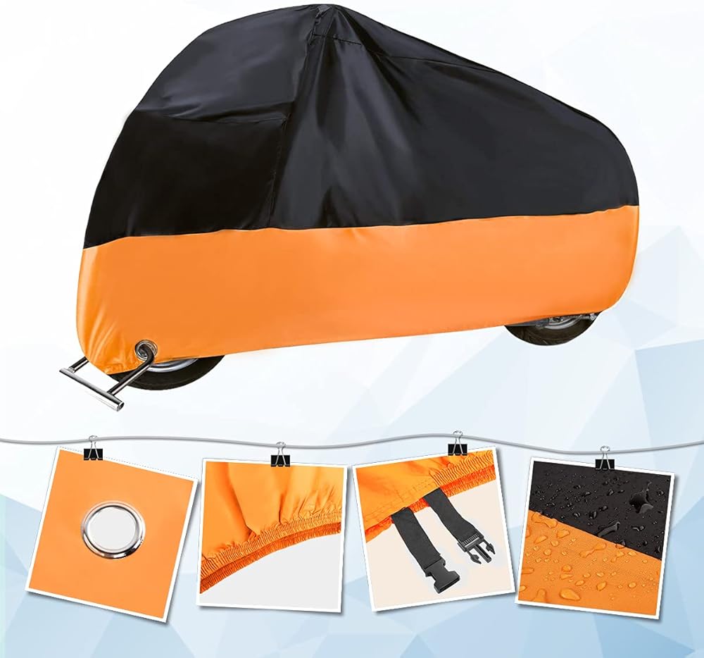 2.Anti-theft Lock Holes: Our waterproof motorbike cover has two sturdy anti-theft lock holes, to provide a snug fit around the motorcycle, preventing the cover from blowing away in windy conditions and adding security.