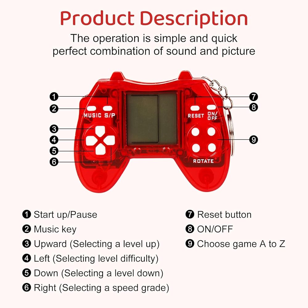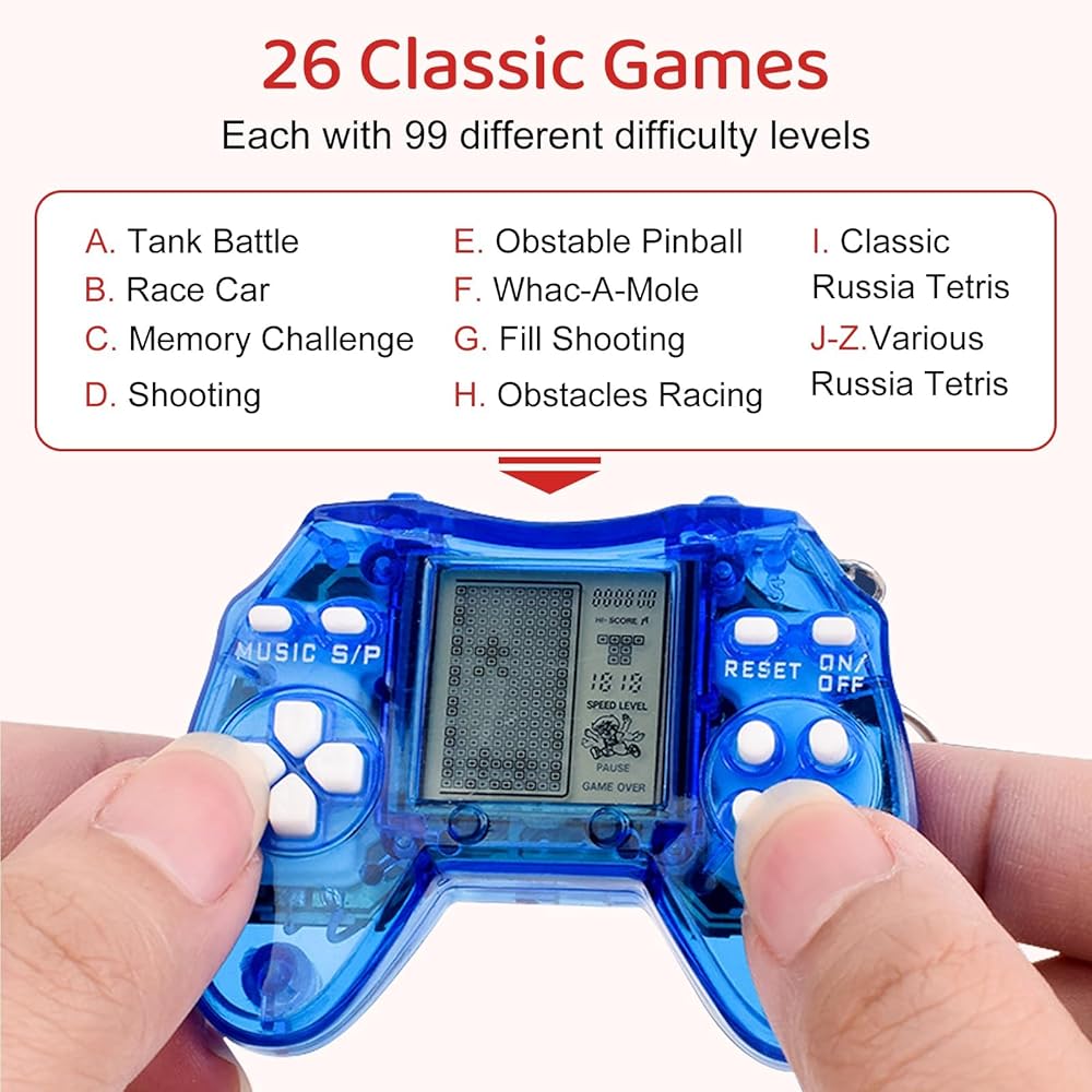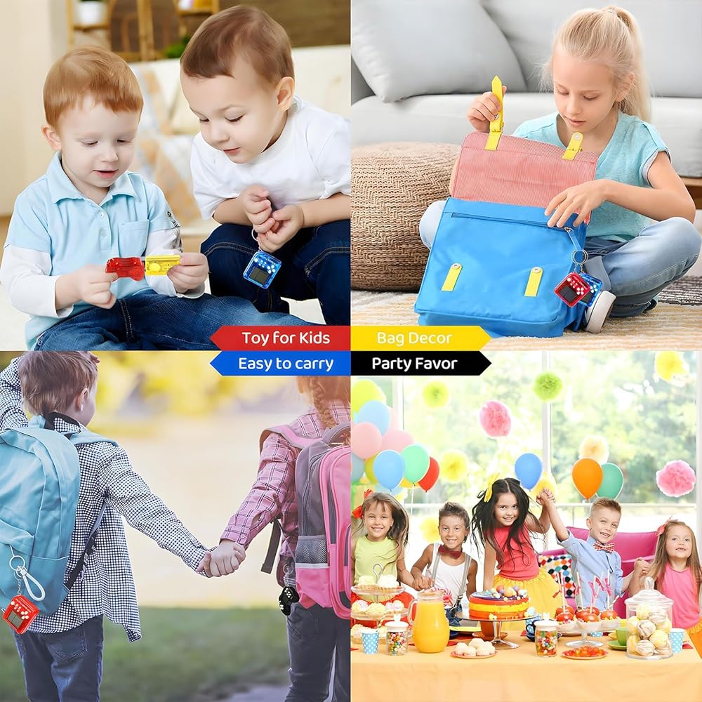 【Arcade Party Favors】-Kids all love games and challenges! This is a party gift set for gaming fans, containing 12 video game key chains, each key chain has 26 classic games, each game has 99 different difficulty levels, high playability.
