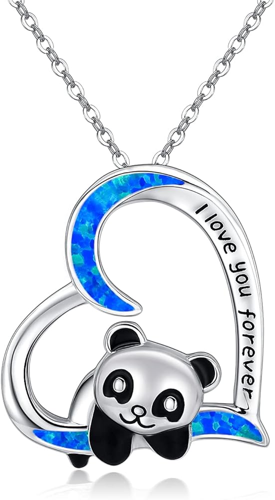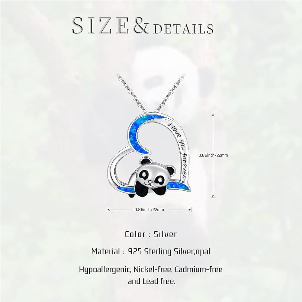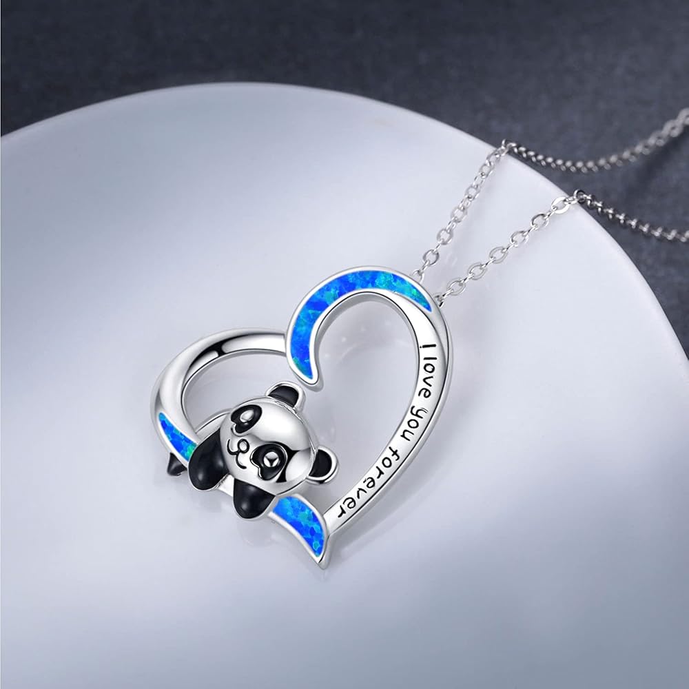 Panda Gifts 925 Sterling Silver Cute Panda Bear Pendant Necklace Animal Heart Necklace for Women Girls Birthday Graduation Gift
