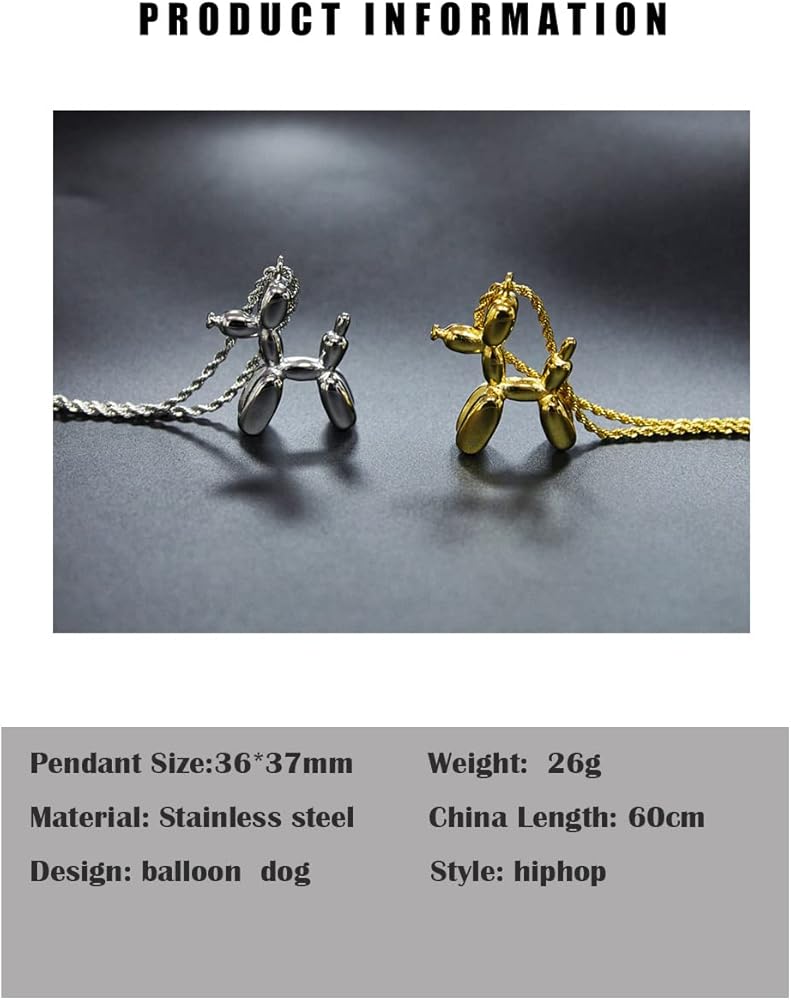 Balloon Dog Necklace Pendant for Men Women Hiphop Clown Charm Necklace Titanium steel Vintage Jewelry