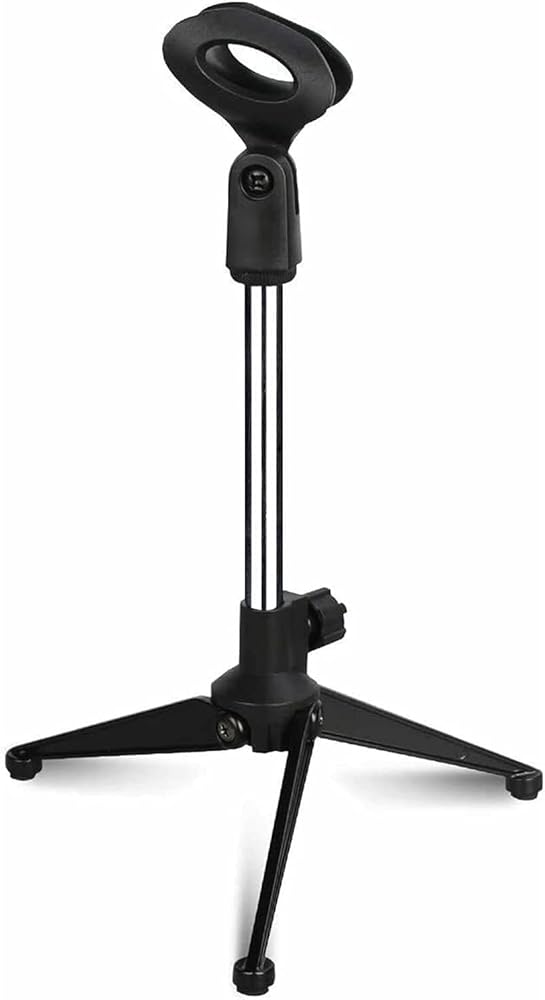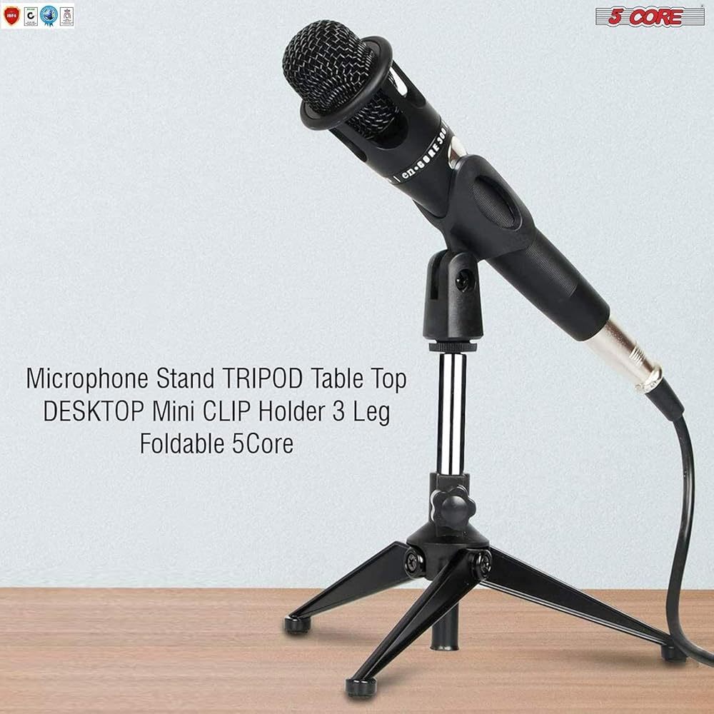 5 Core Premium Mini Microphone Stand Tripod Universal Adjustable Desk Microphone Stand Portable Foldable Table Top Desktop Stand with Small Plastic Microphone Clip (MINI TRI CH, 1 Piece)