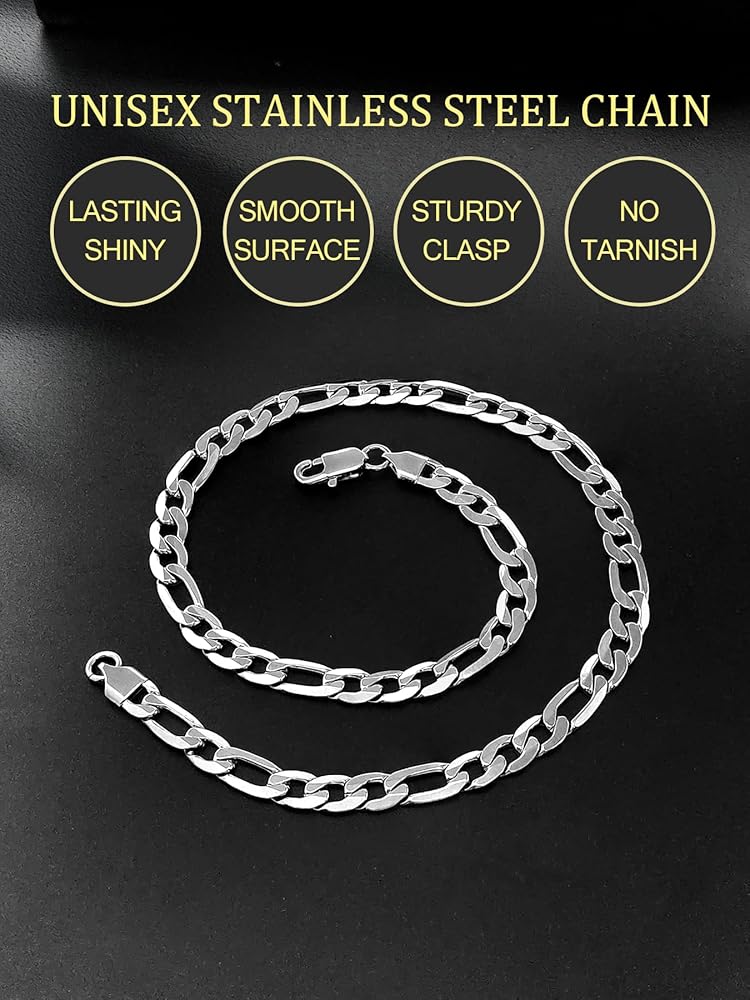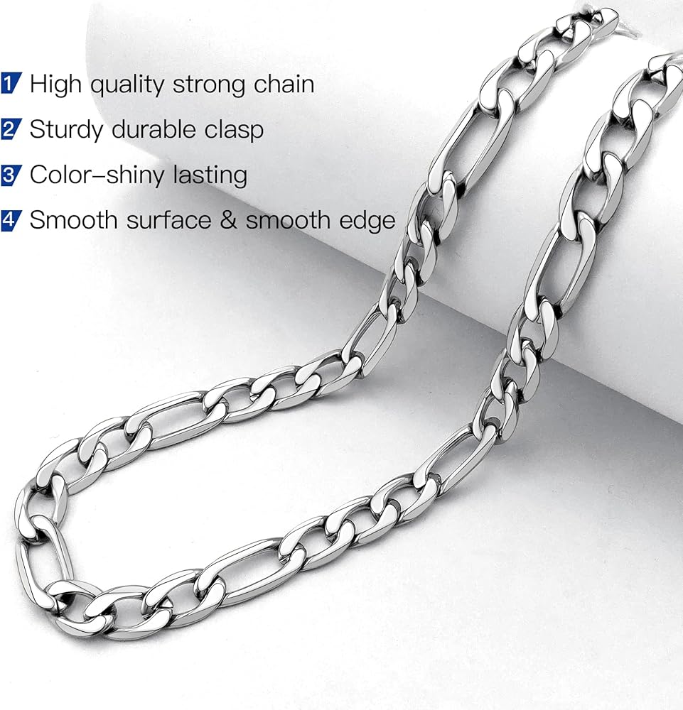 ✦Men Figaro Chain: Sturdy construction, well-made fiagro chain necklace, great looking with lobster claw clasp that fasten the necklace securely. Trendy and hiphop jewelry.