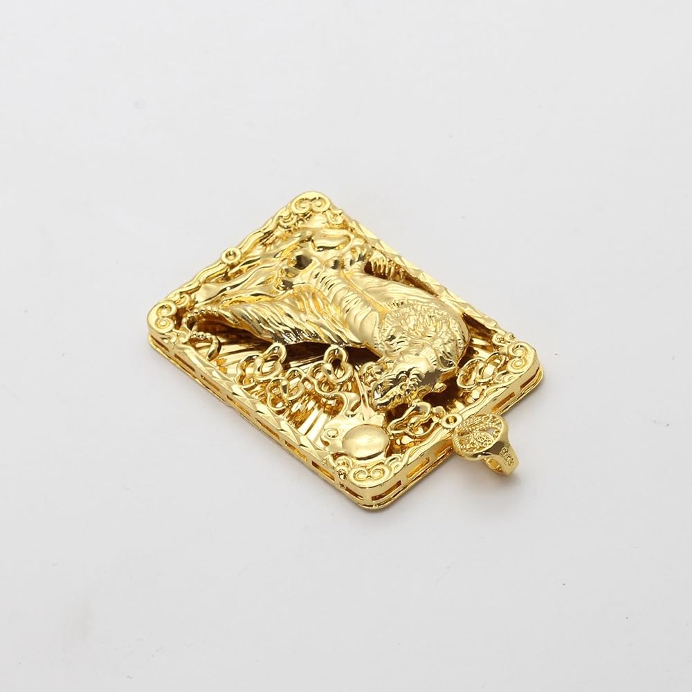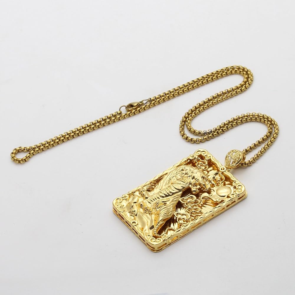 18K Gold Plated Huge Animal Tiger Dog Tag Pendant Necklace