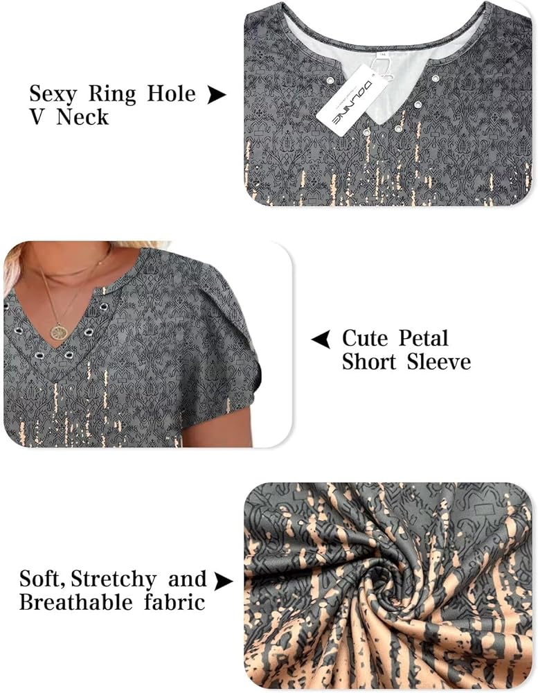 Casual plus size tops for women, ring hole v neck tops tee, petal short sleeve tshirts, stretch loose tunics, solid color and print, on the hip length, sexy, plain, trendy and elegant.