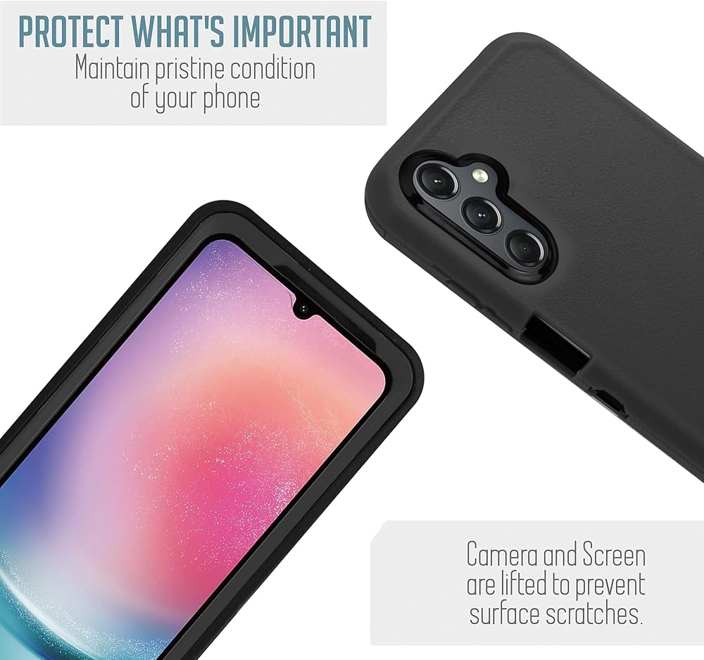 【Durable Material】Hard plastic inner and soft rubber silicone outer construction absorbs shock and drop, plus raised beveled edge keeps your Galaxy A24 phone touchscreen safe.