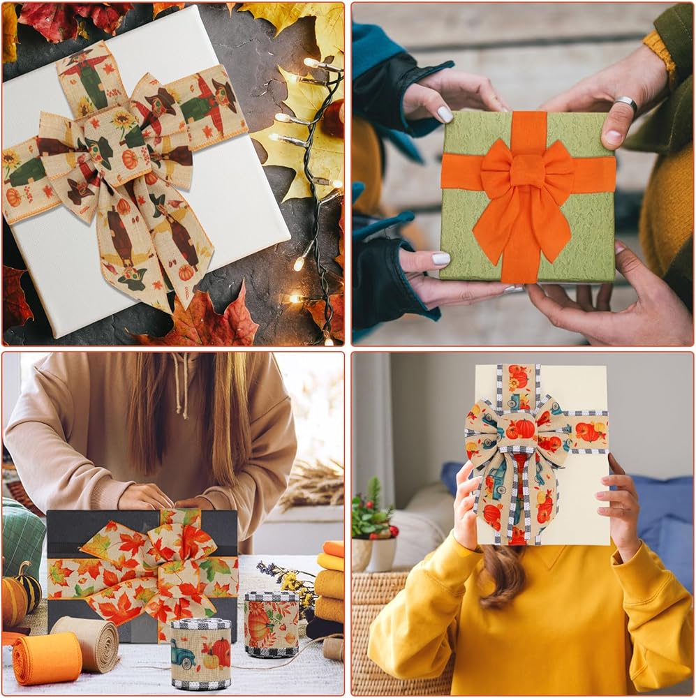 Fall Design: These burlap ribbon rolls are of fall design in typical orange colors with pumpkin harvest pattern and buffalo plaid pattern, will add autumn color and atmosphere to your home when you use them making crafts.