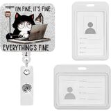 Funny Coffee Cat Badge Reel with 2 ID Clear Badge Holder, I'm Fine It's Fine Everything is Fine Badge Clip, Retractable Badge Reels Accessories for Nurse,Medical Worker,Nursing Student